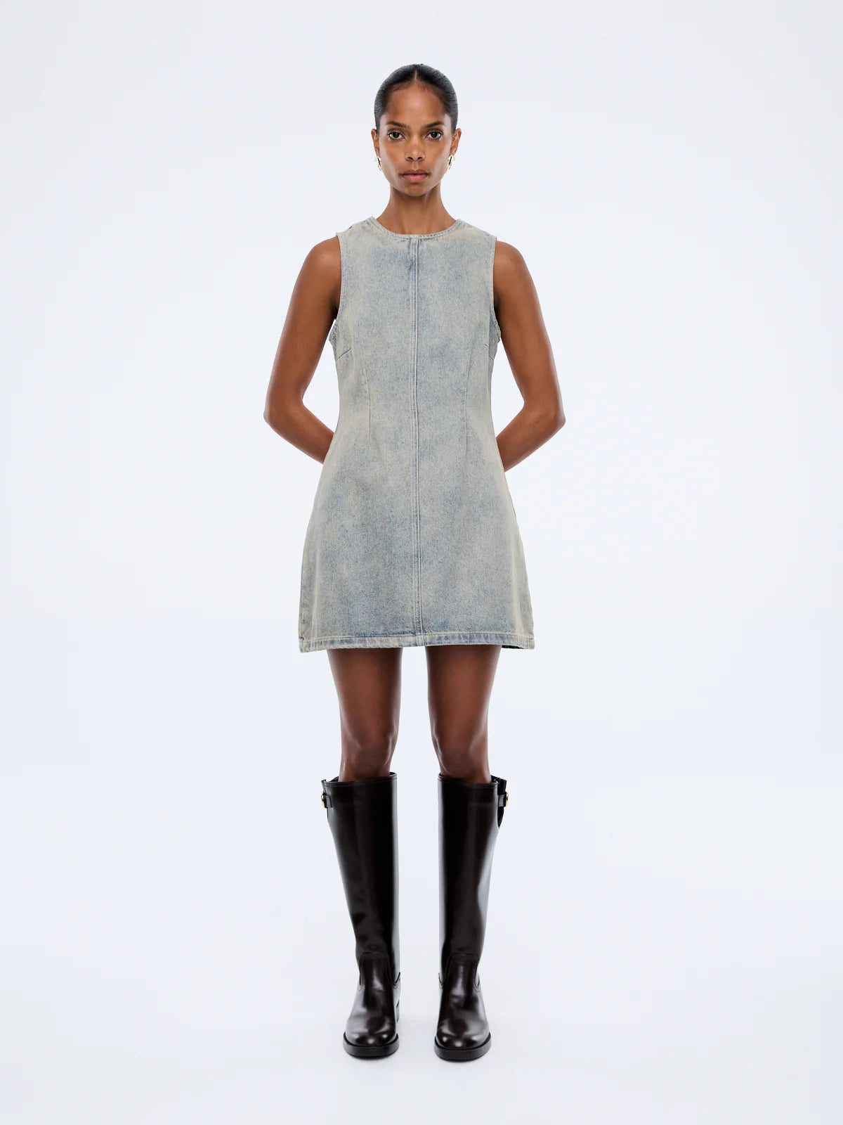 The Gracie Denim Dress, is made from 100% cotton denim with a peach wash, and classic design. Featuring a tighter fitting waist with an Aline skirt, it has a centre back ykk zipper for effortless wear.