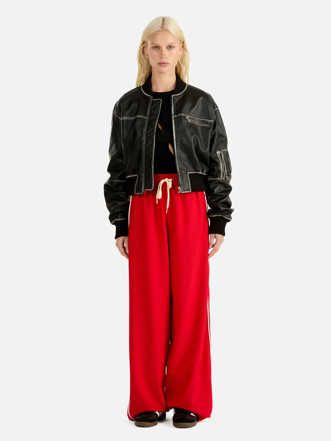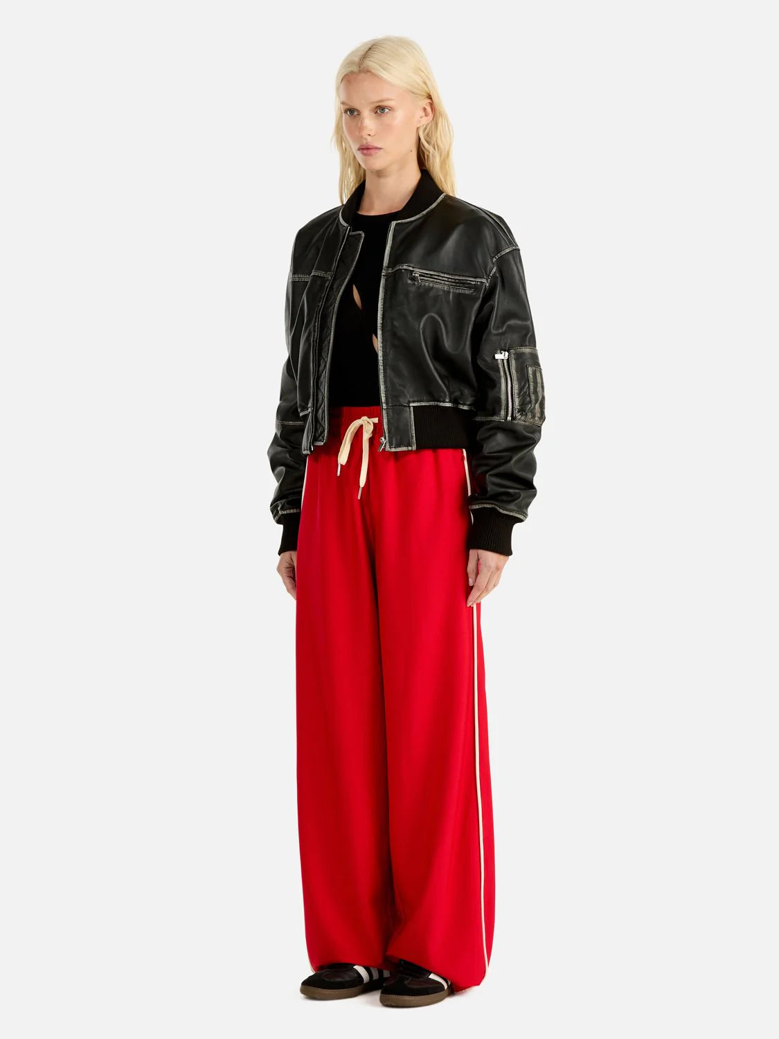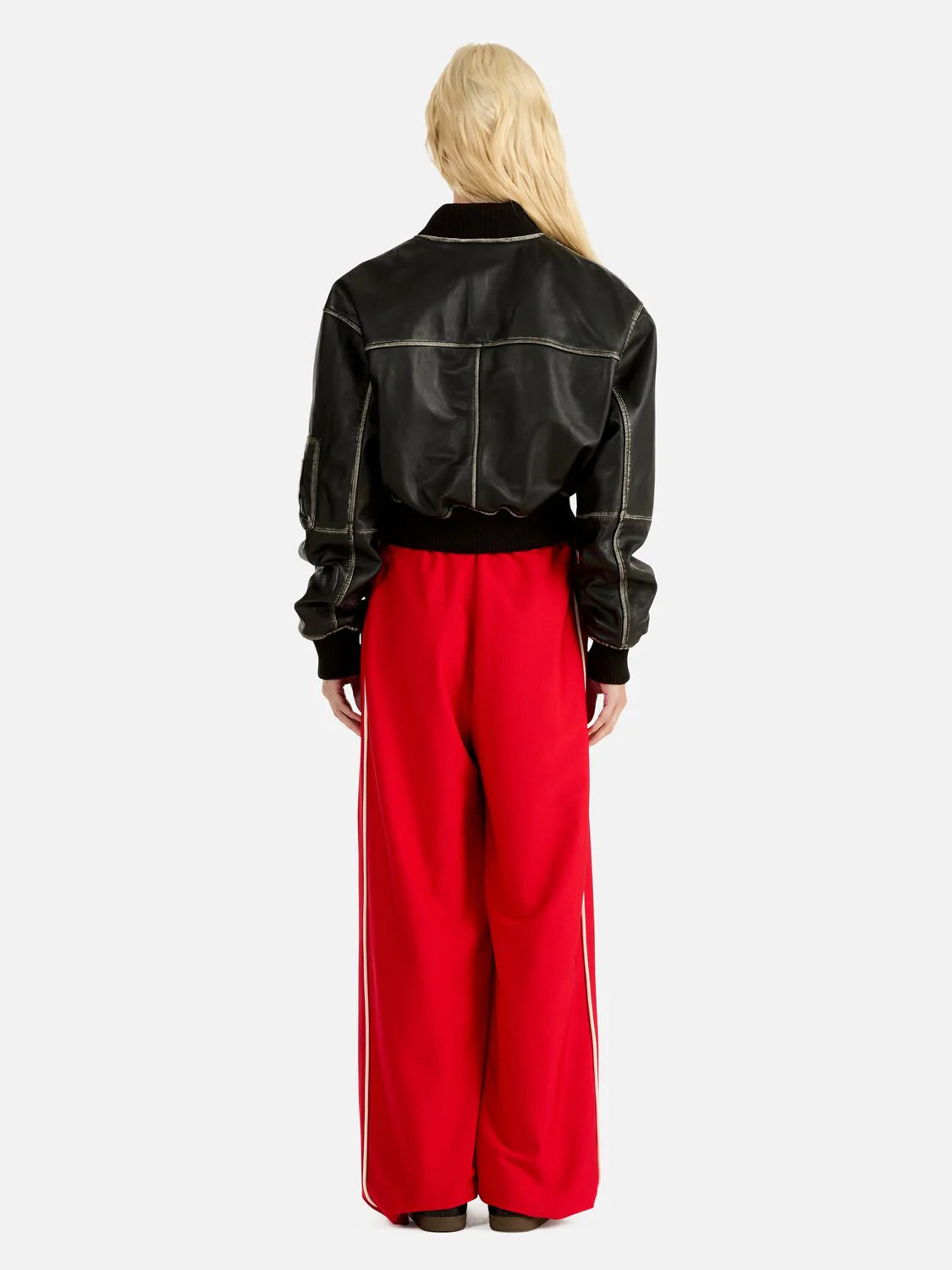 The Hadley Worn Leather Biker Jacket has been crafted from a hand rubbed leather for a vintage distressed, worn-in look. Designed in an oversized cropped silhouette the aviation style bomber features an elasticated waistband with ribbed cuffs and collar.
