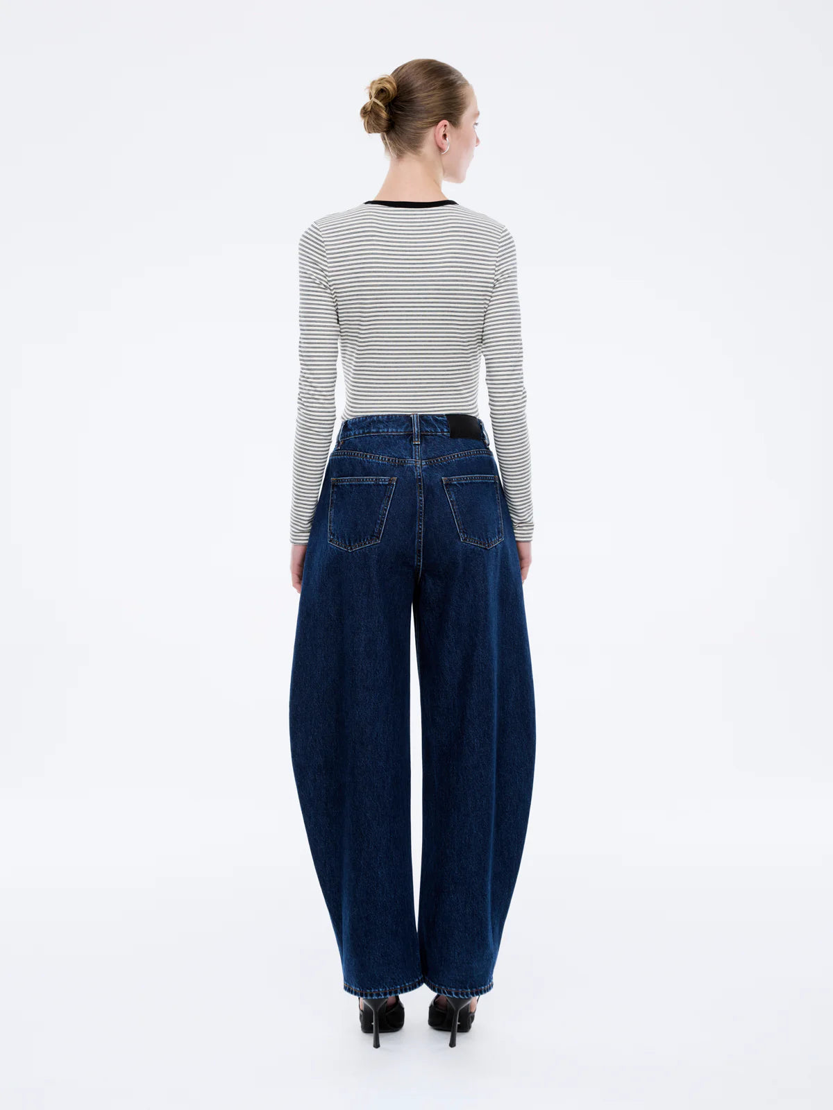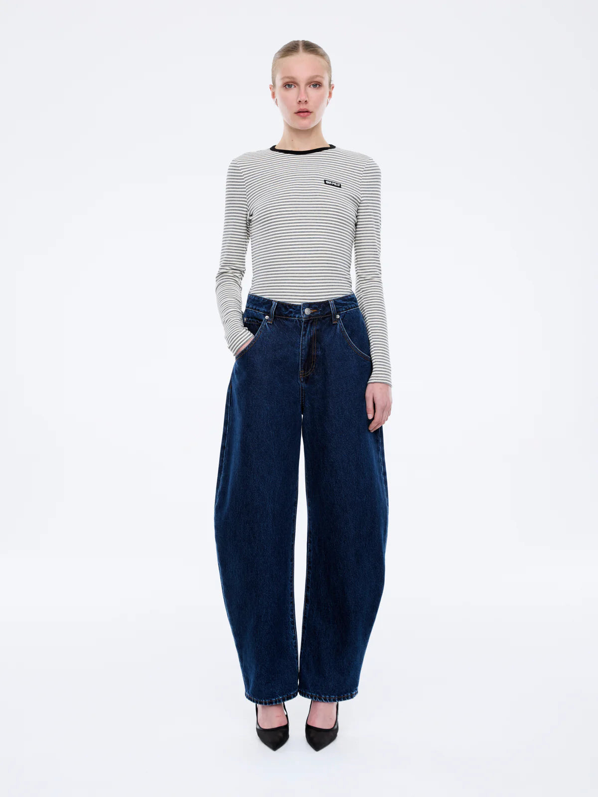 The Nelly Long Sleeve Stripe Tee is cut form-fitting in yarn-dyed stripe jersey with a classic crew neckline.