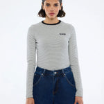 ENA PELLY - Nelly Long Sleeve Stripe Tee - Monochrome Stripe