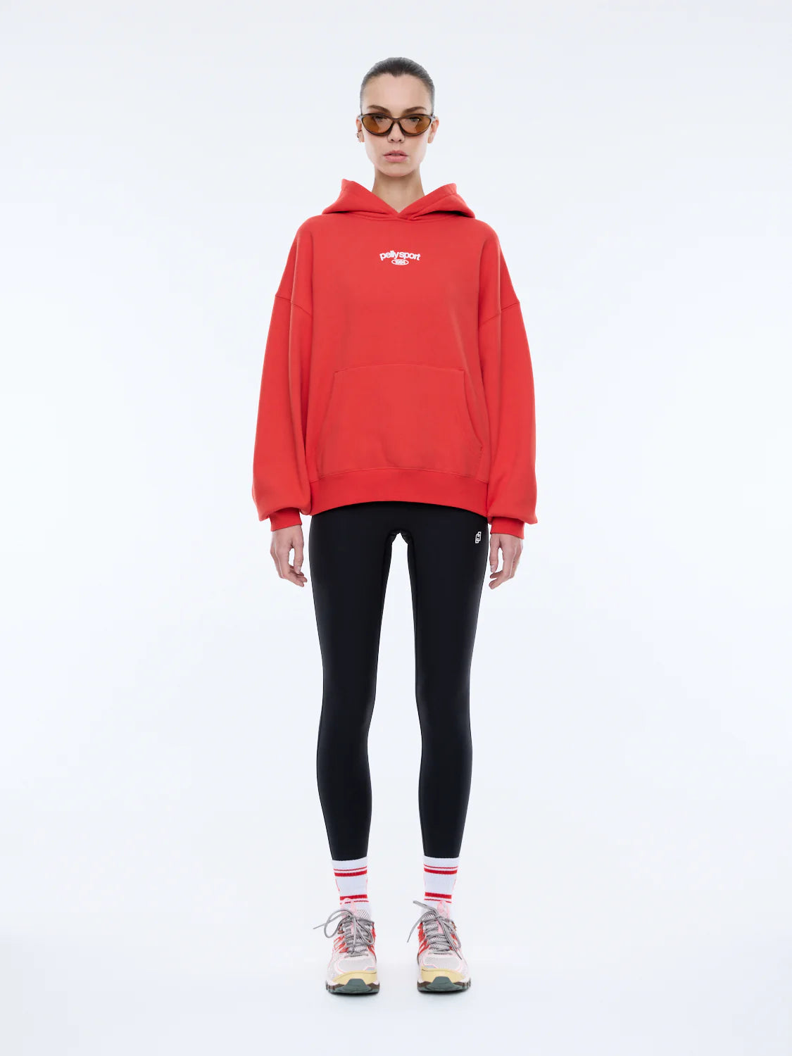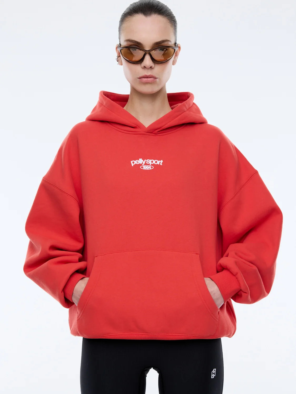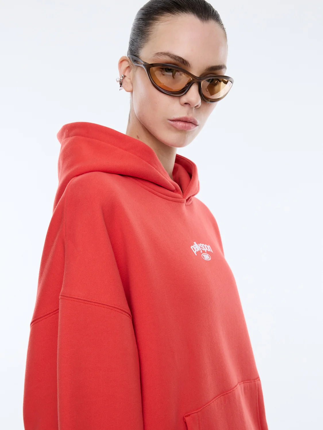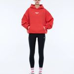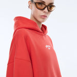 The Pelly Sport Hoodie in Flame Red brings bold energy to everyday comfort. Crafted from a soft, cotton-rich brushed fleece, this oversized silhouette features a relaxed drop shoulder and statement flame red hue.