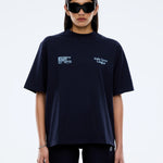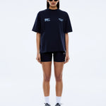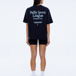 The Pelly Sports League Tee in navy cotton jersey delivers an oversized street-inspired silhouette. Finished with plastisol prints front and back for a bold, team-style expression.