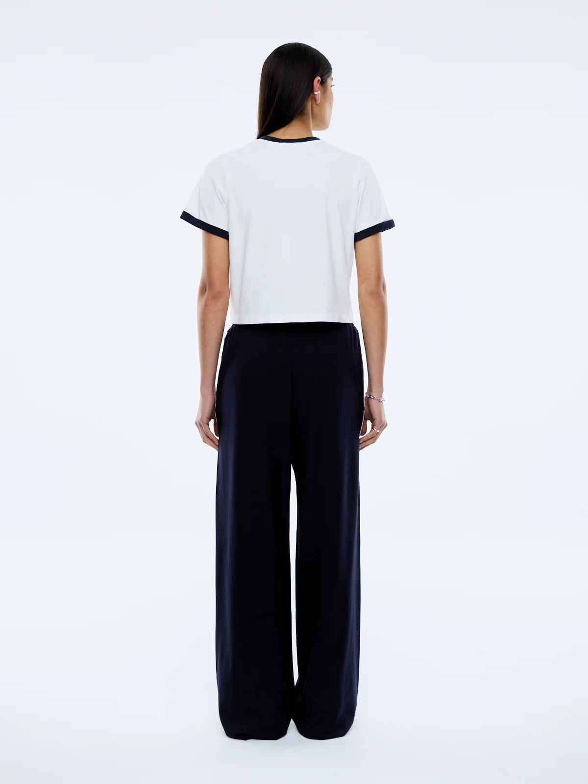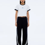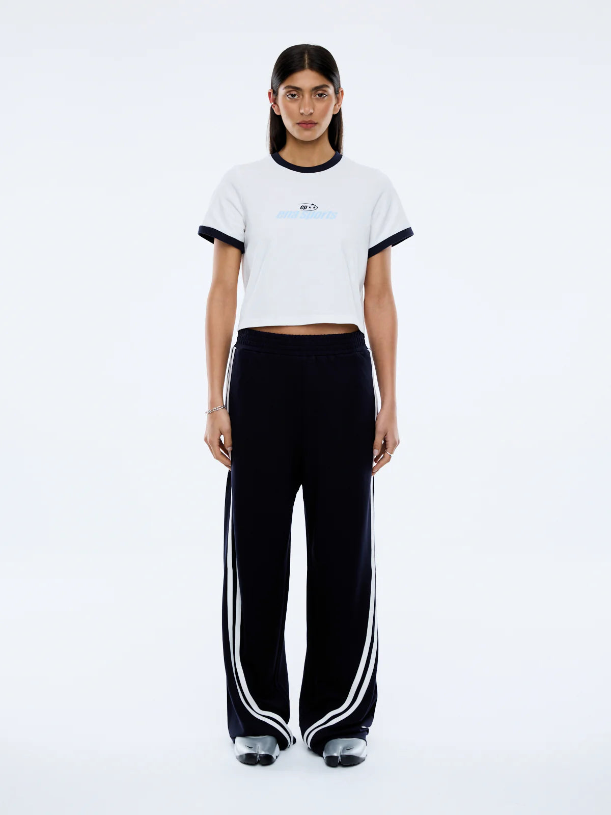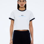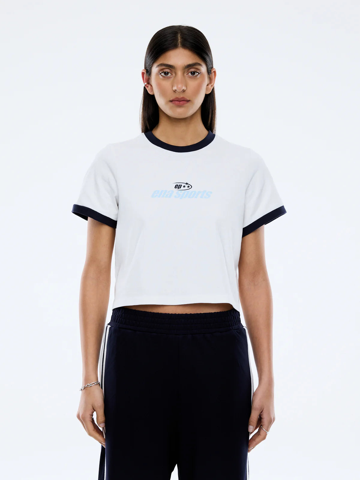 Everyday Layer. Styled Ease. The Relaxed Ena Sports Baby Tee in vintage white cotton jersey features contrast bindings and a sport-inspired graphic. Finished with a water-based print for a cool, lived-in finish.