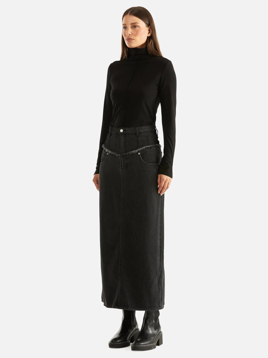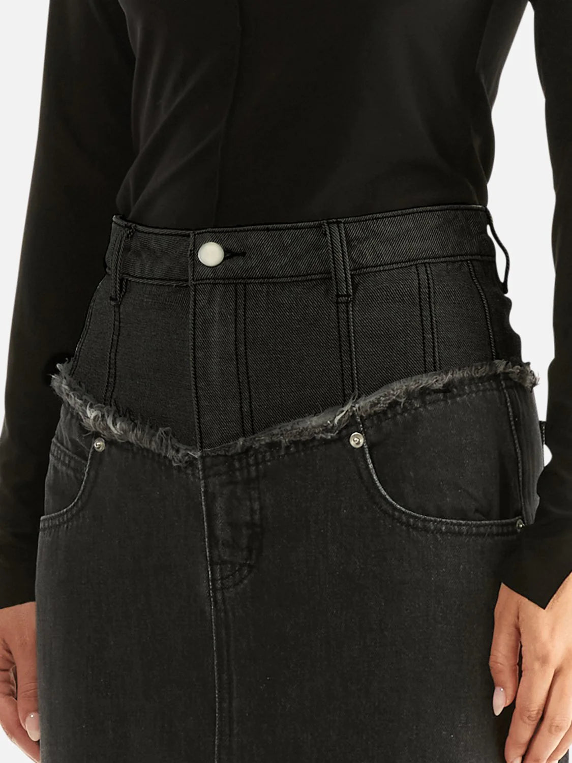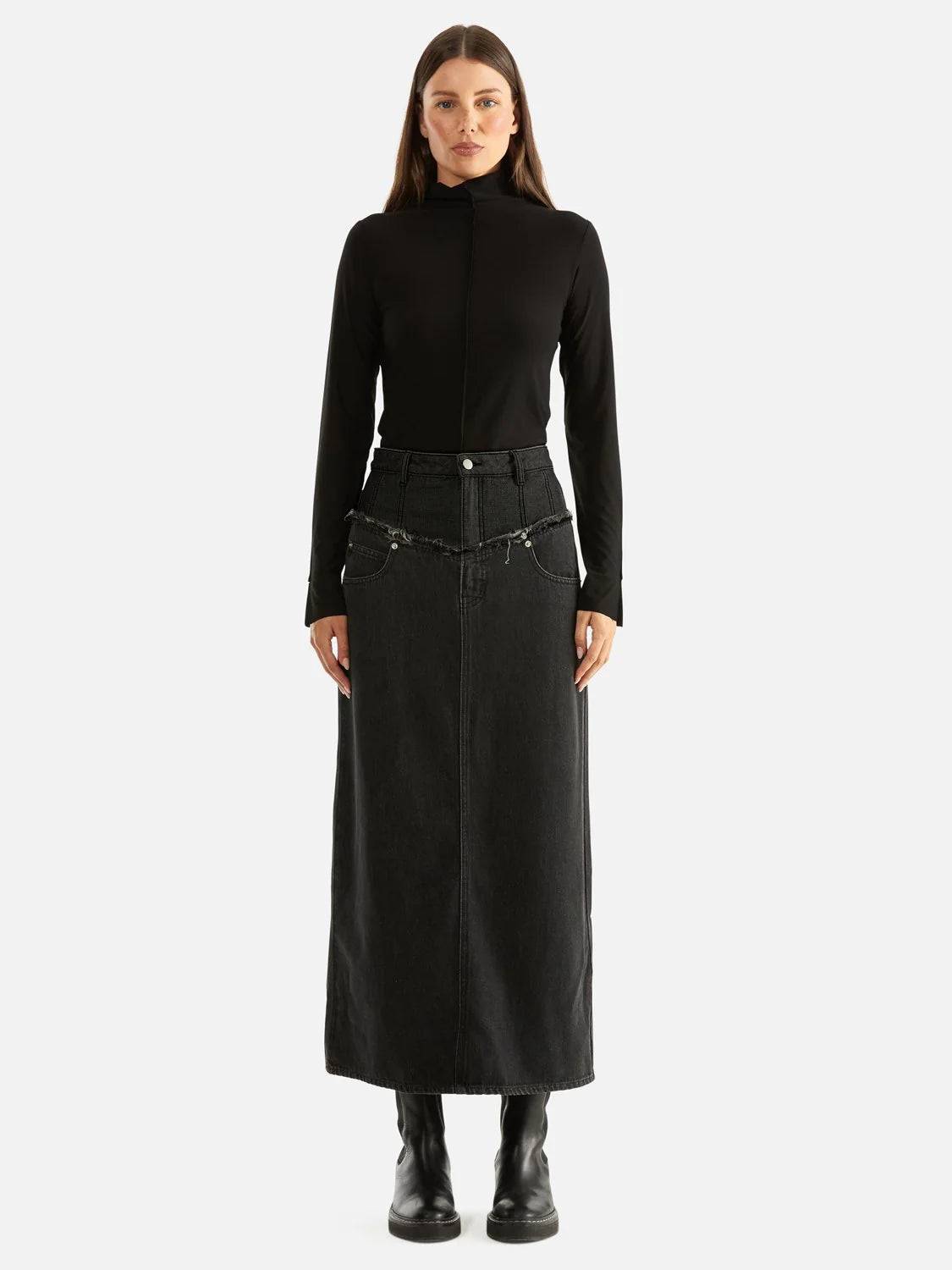 ENA PELLY - Rylie Two Tone Denim Maxi Skirt - Black / Charcoal