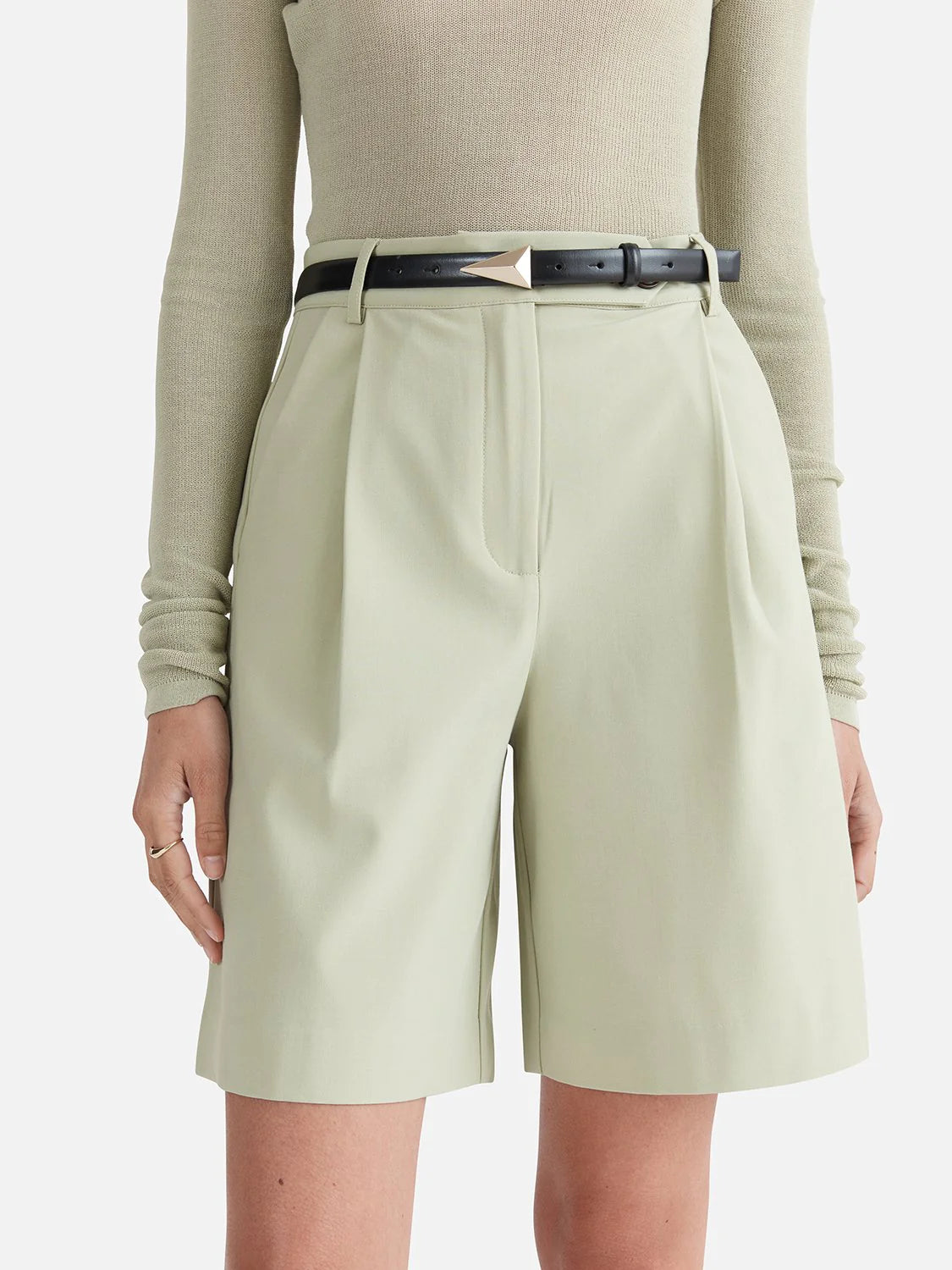 Add a fresh sage tone to your wardrobe with the Jade Tailored Bermuda Short. Featuring a front zip fly, belt loops and front and back pockets, the tailored longline short finishes just above the knee. The Jade Tailored Bermuda Short is the perfect addition to your wardrobe for effortless, transeasonal styling.