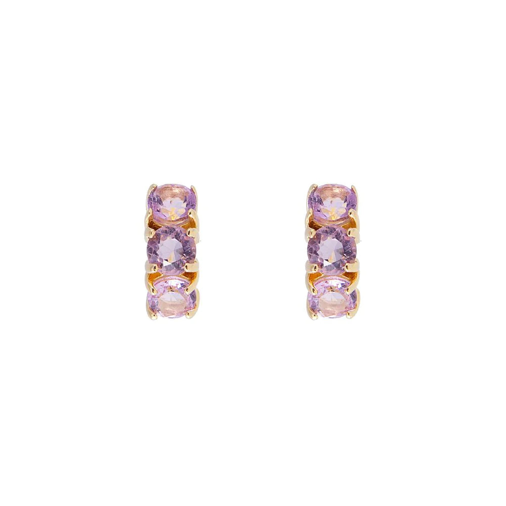 Huggies continue to skyrocket in popularity. These gemstone huggies feature 3 round faceted amethysts that will illuminate your face.
