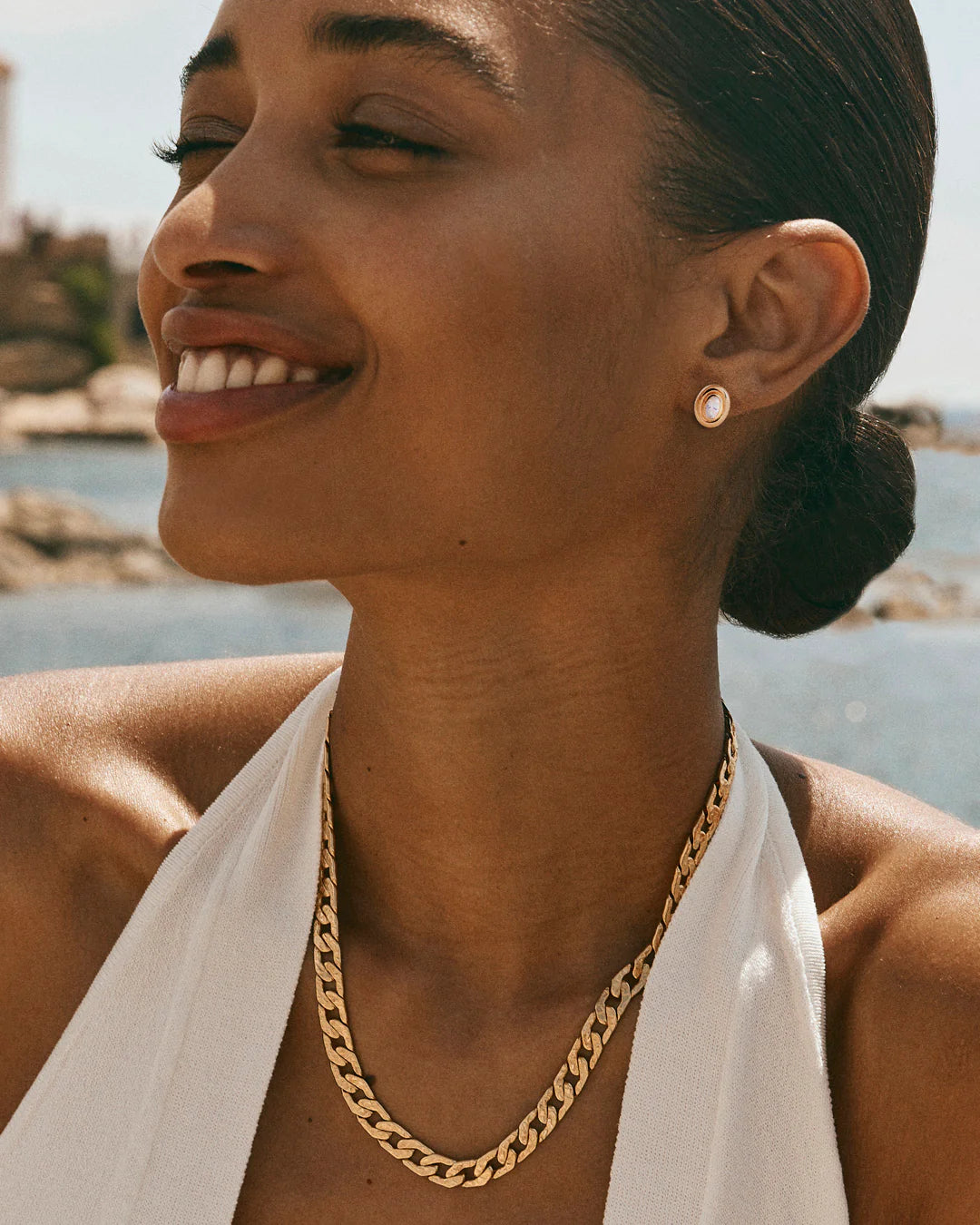Crafted with precision, the Bezel Set Oval Studs feature elegantly framed oval gemstones that catch the light from every angle. The bezel setting not only enhances the stone’s natural beauty but also provides a sleek, secure finish perfect for everyday wear. These timeless studs combine classic design with modern durability.
