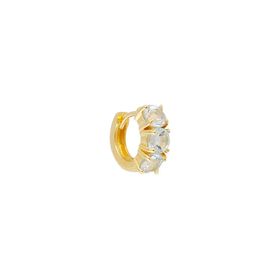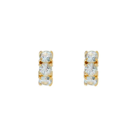 Huggies continue to skyrocket in popularity. These gemstone huggies feature 3 round faceted blue topaz stones that will illuminate your face.