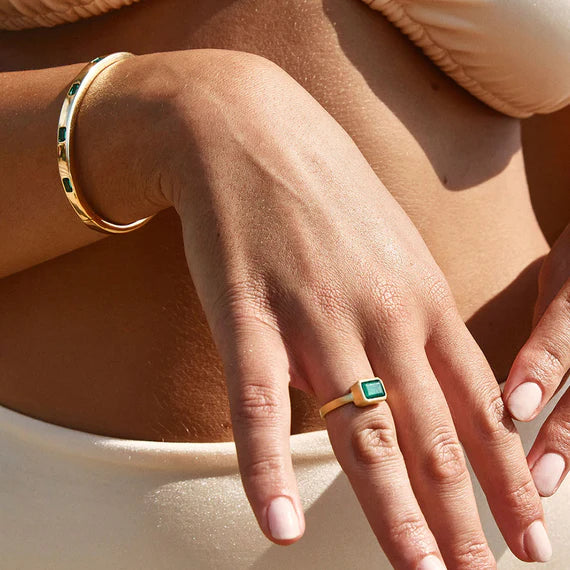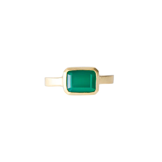 Simple and stunning, this ring showcases an amazing green agate, set in sterling silver with 18k gold plate matte finish.