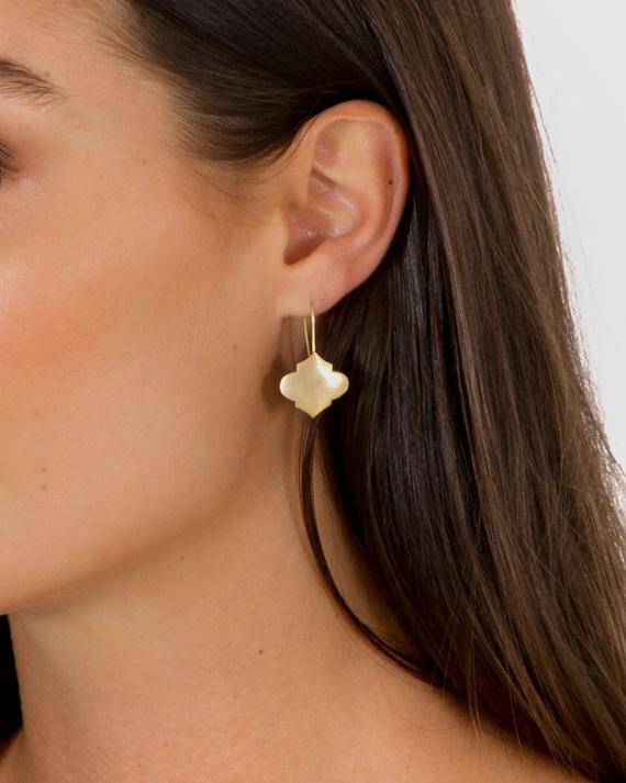 As worn by Asher Keddie on Offspring, these stunning lightweight sterling silver 24k Italian gold plate earrings with Moroccan motif are the perfect everyday earring.