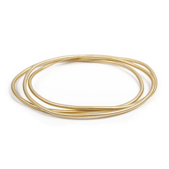 These fine sterling silver 18k gold plate handmade bangles add luxury to any outfit. Gorgeous as a set of three or back with our other bangle sets. You can mix silver and gold to create a rich metallic arm sensation. In a matte finish to give it a creamy luxe finish.