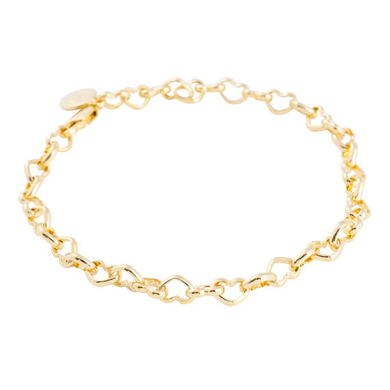 Link chain bracelets are all the rage this season. This 18k gold plate bracelet, featuring linked hearts is the perfect piece to add glamour and sophistication to any outfit.