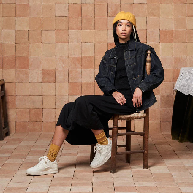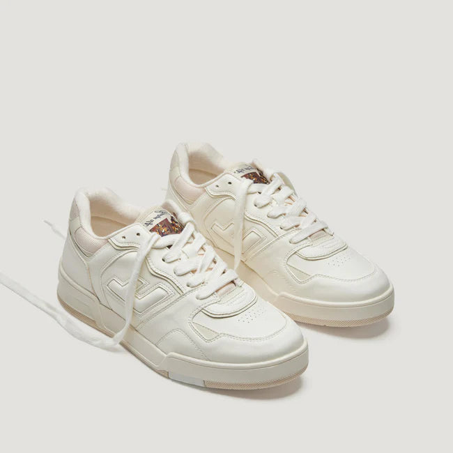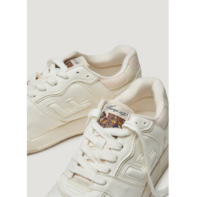 The Leonardo 02 sneaker by Flamingos Life in Pearl is a reinvention of a 90s sneaker. A versatile, nearly all-white sneaker with pops of off-white.