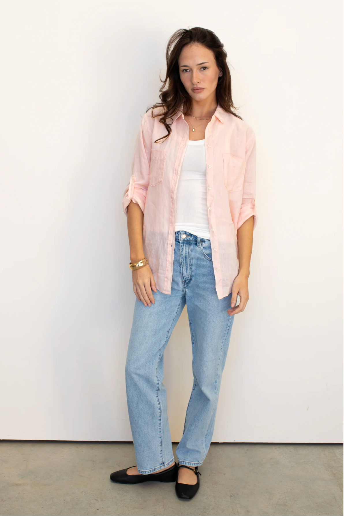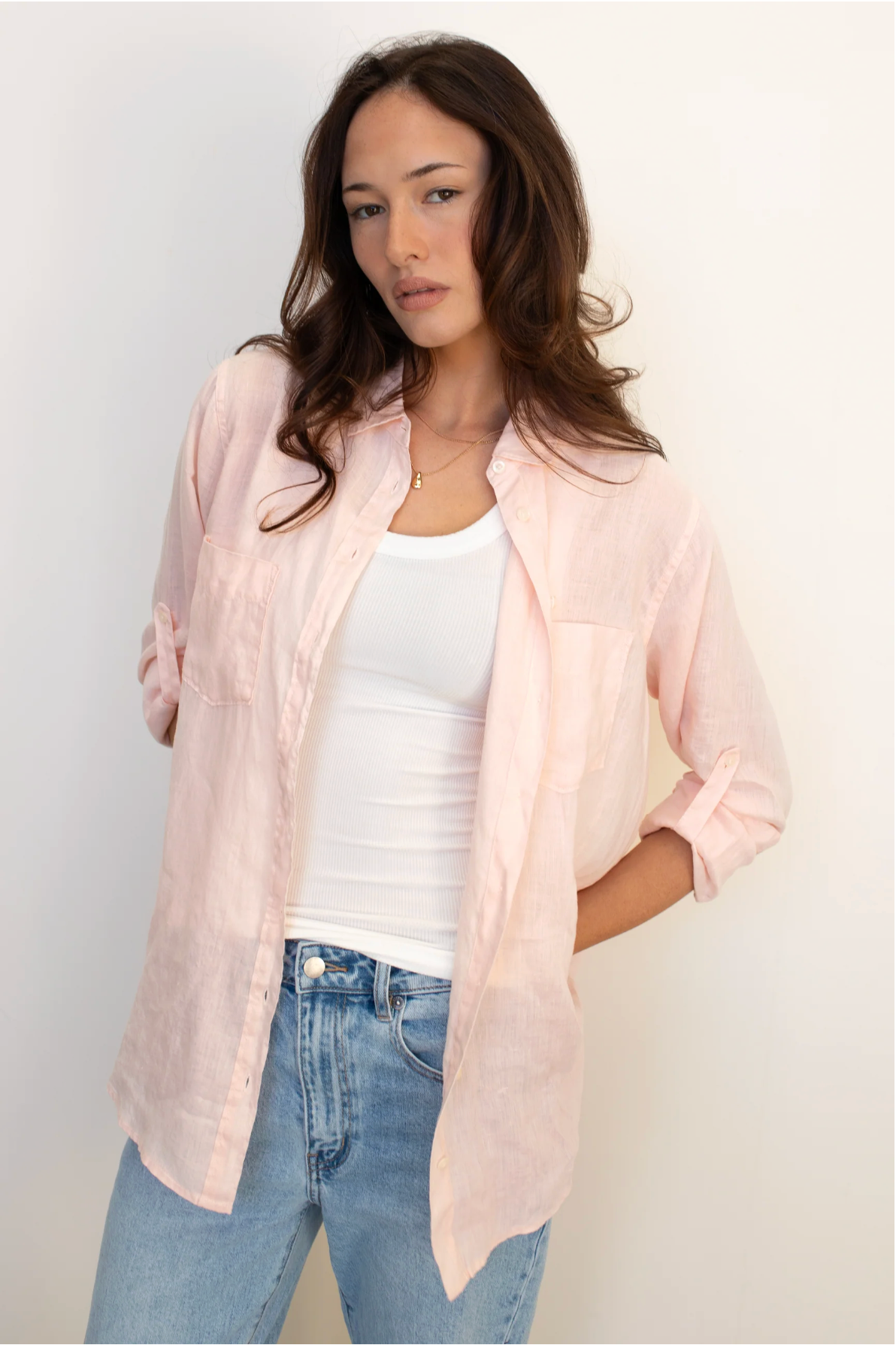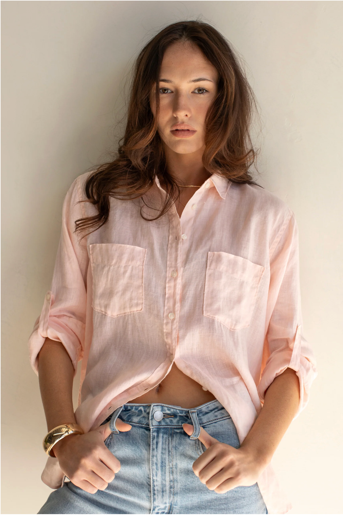 HUT CLOTHING - Boyfriend Linen Shirt - Marshmallow Pink