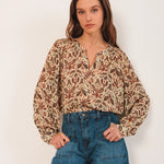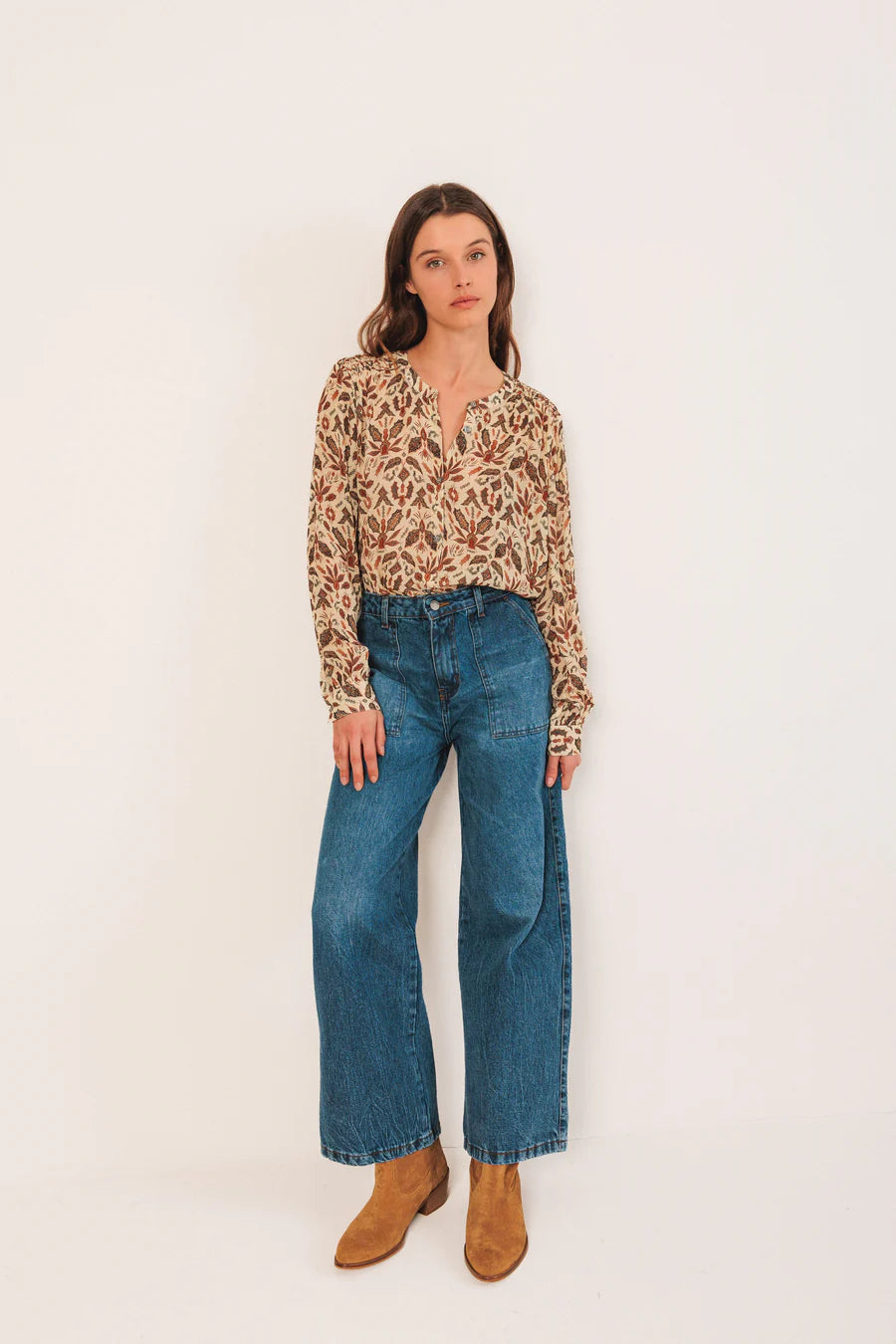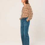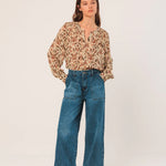 - Gathered neckline with hand-smocked detail and back button teardrop closure
