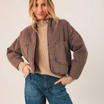 Kimono-inspired jacket with stand-up collar and maxi pockets that will match the pants from the same collection. It's a special total look for this fall and winter.