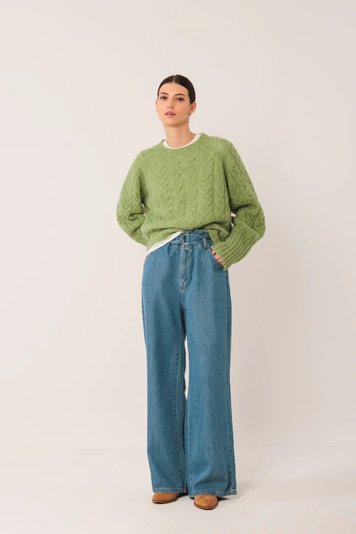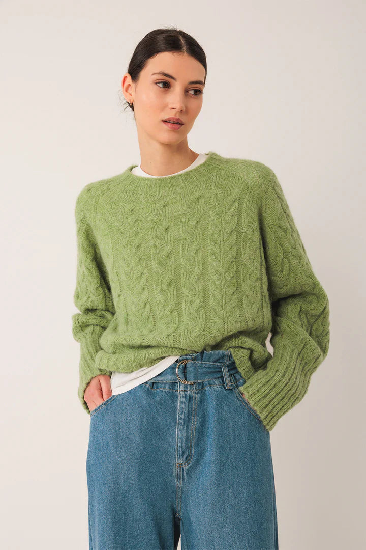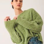 INDI & COLD - Crop Cable Knit Sweater - Matcha
