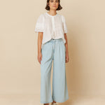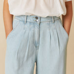 Crafted in washed-denim effect Lyocell, these pants combine style and functionality. The waistband with belt loops and zipper and button closure ensures a perfect fit. The French-cut front pockets and double front darts add a touch of elegance, while the relaxed fit provides all-day comfort.