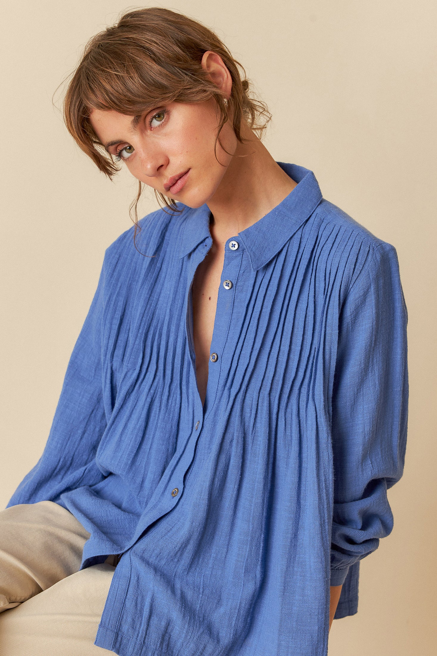 INDI & COLD - Leah Pleated Shirt - Azul Klein