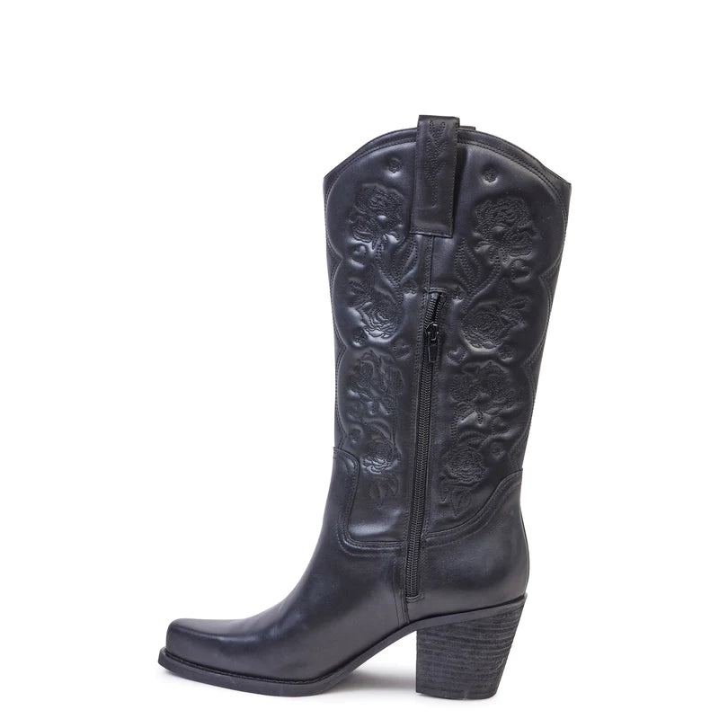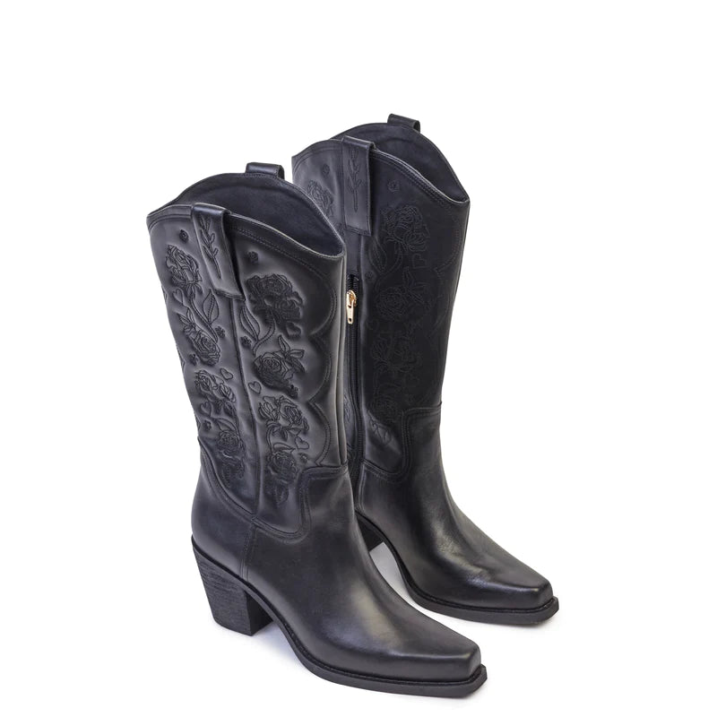 The Taylor Boot nods to the coveted Western trend with its Cuban heel, sculpted, angular toe shape and custom-designed rose embroidered upper. Taylor is sure to make a statement in this Winter’s everyday wardrobe.
