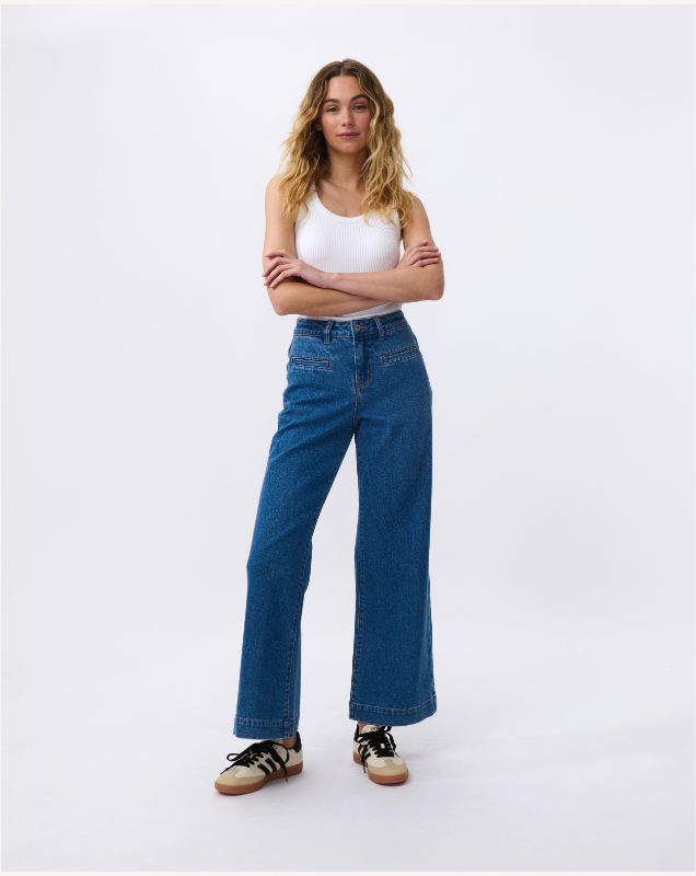 Channel chic 70’s style. A modern twist on the classic wide-legged jean, the Freya features a mid/high rise that’s fitted at the hips with a relaxed, wide leg that flares at the knee. Works so well with one of our breezy cotton shirts and a pair of boots or sandals.