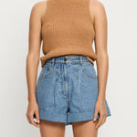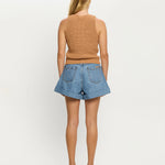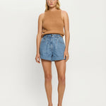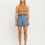 The Avery Denim Short is crafted in a soft stonewash finish, designed in a relaxed A-line silhouette with front pleat detailing and rolled cuffs. Complete with signature hardware, this timeless style blends structure with ease. Style with the Marla Denim Shirt with heels for a modern denim-on-denim look, or pair with a Tallulah Tank and slides for relaxed everyday wear. This style runs big, if in-between sizes we recommend to down.