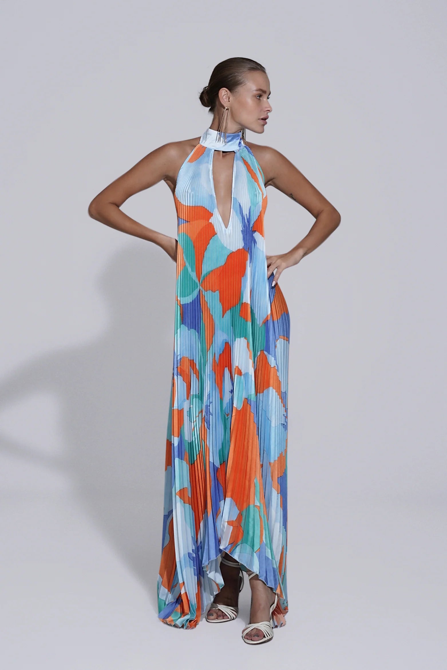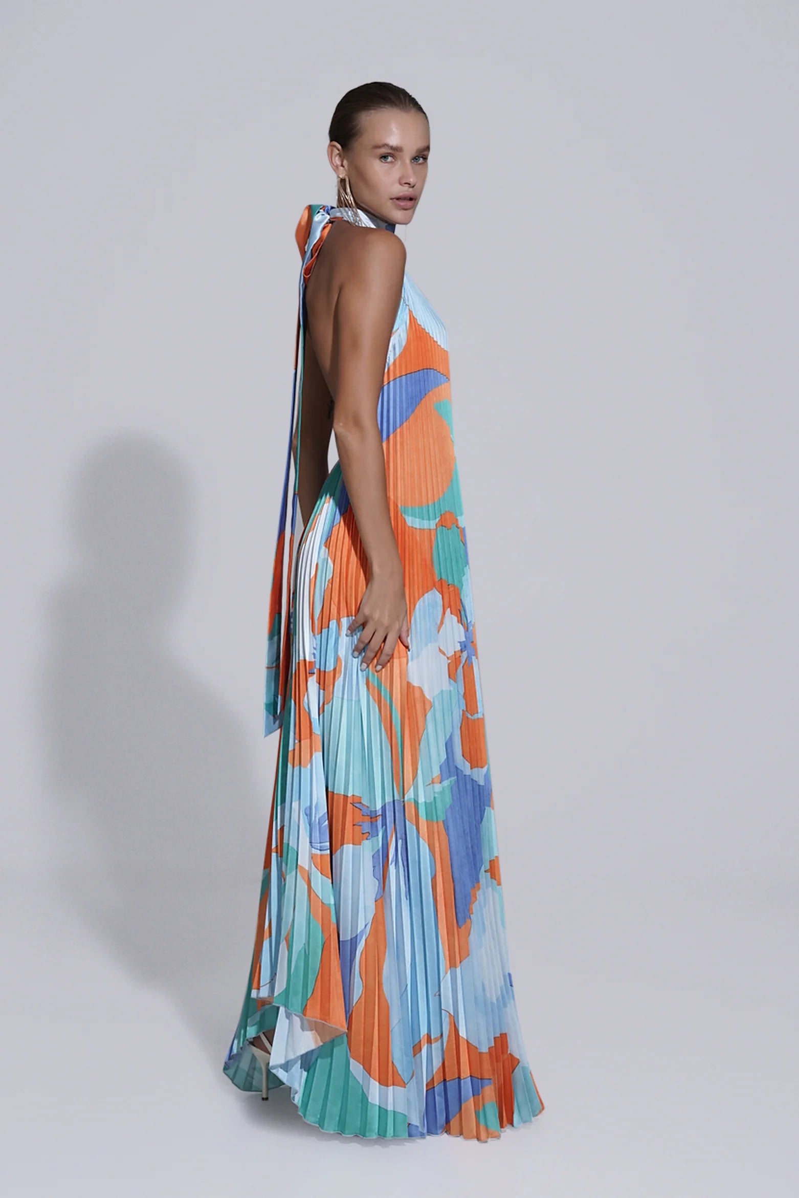 Embracing a flair for drama & grandeur, the Opera plays carefully with modern elegance. Featuring a high neckline, tie back halter and asymmetrical silhouette, this stunning billowing pleat full-length dress will transform you for an evening to remember.