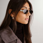The Boston is an ode to the 90’s, which evokes a vintage aesthetic. This oval frame features a statement silver metal arm, with a signature brand stamp detail. This premium wire frame comes with a smoke mono polarised lens adding to its high end quality.