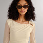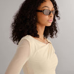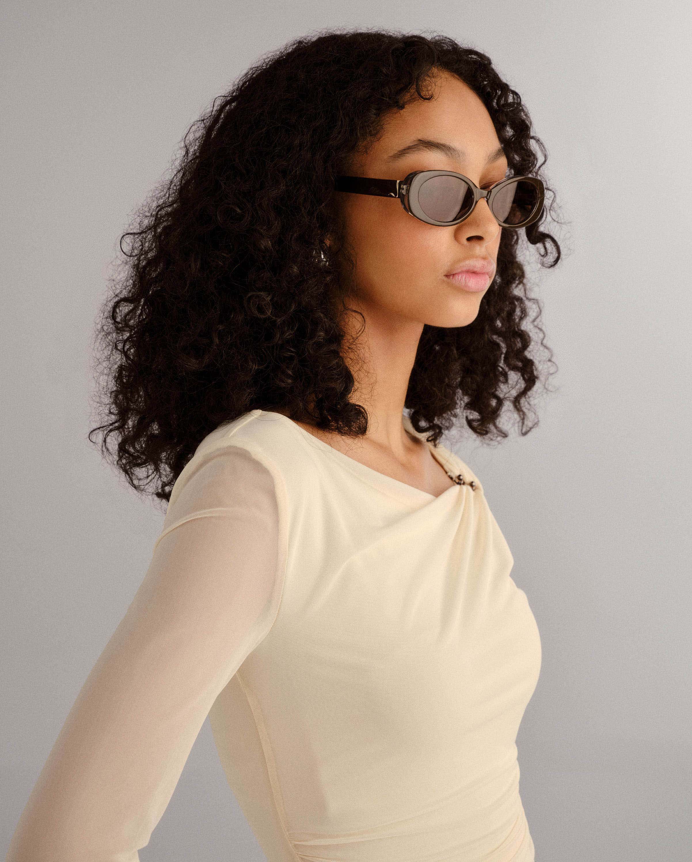 The Morgan is an ode to the 90’s. A petite oval frame with signature gold detailing and thin arms, this style is giving quiet luxury.