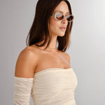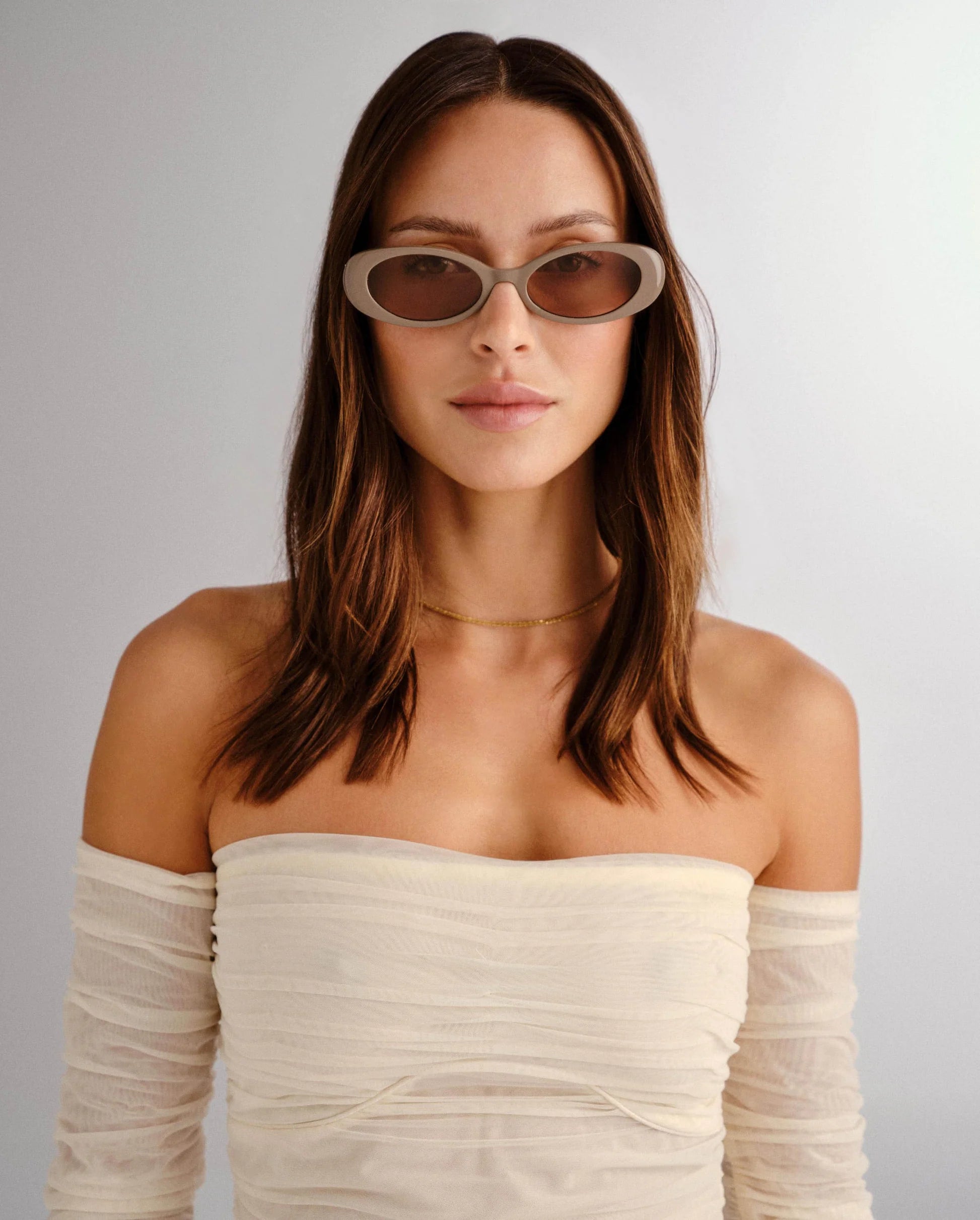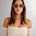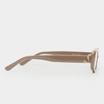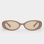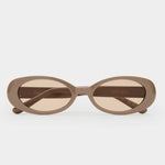 The Morgan is an ode to the 90’s. A petite oval frame with signature gold detailing and thin arms, this style is giving quiet luxury. Handcrafted using a taupe acetate with a brown tint lens.