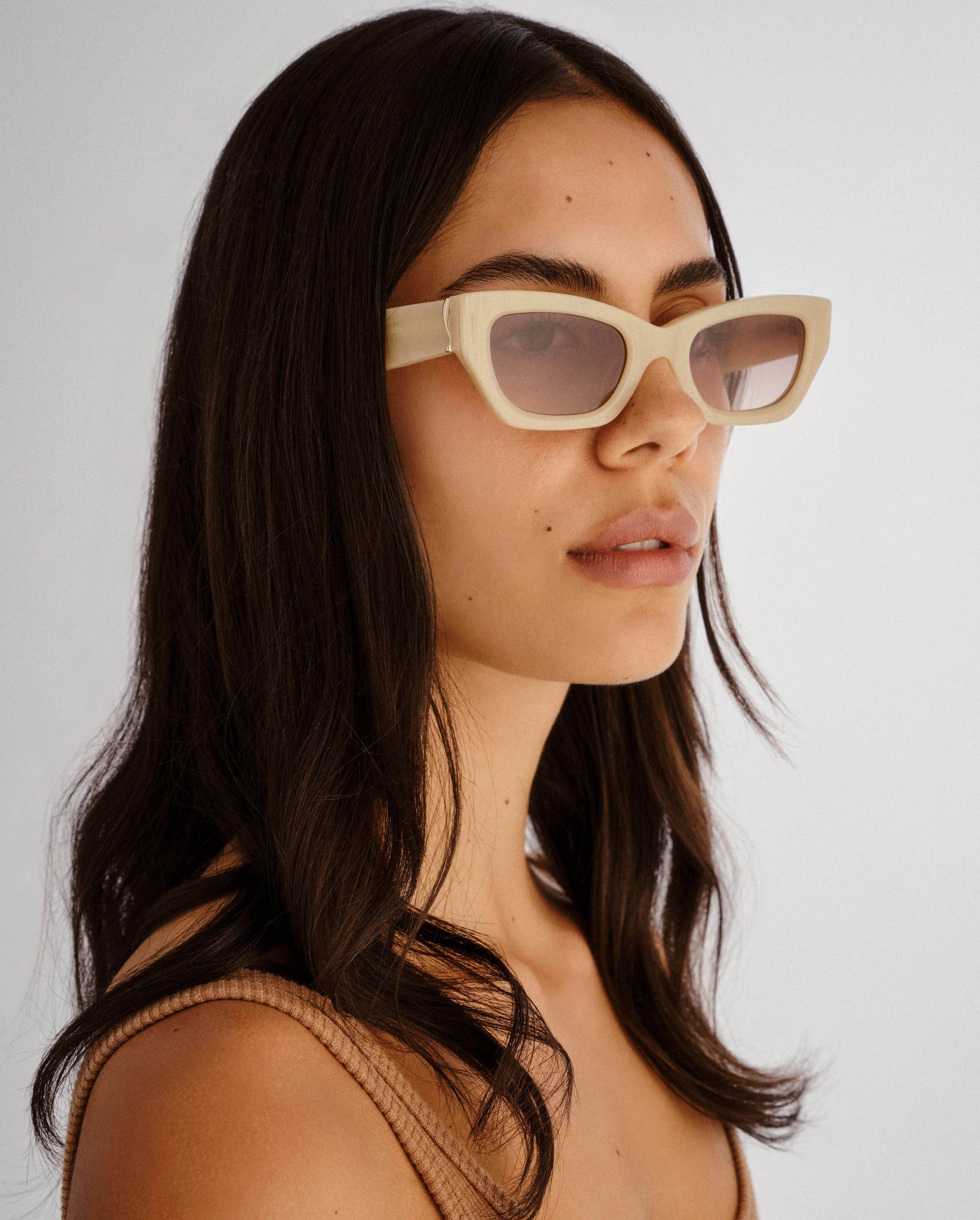 Bold in all the right ways. The Sutton is a wide cat-eye frame with sharp lines and thick temples, balanced by subtly curved metal detailing that adds a refined touch. Designed to frame the face with confidence, this style is equal parts statement and staple.