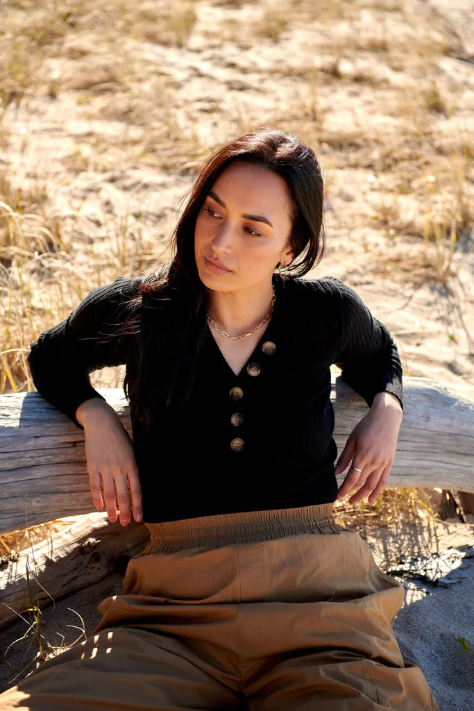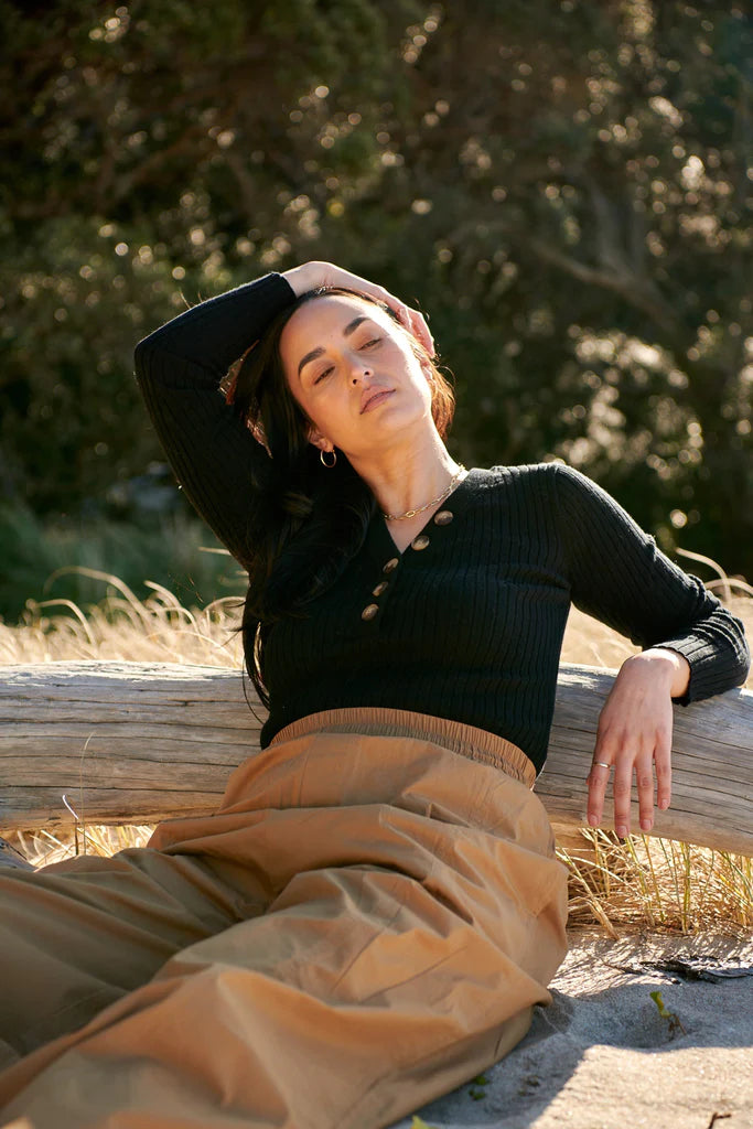 This fitted style is designed to make you feel held together, the rib structure is perfect for the figure-hugging knit. You feel confident wearing this knit, curves or no curves it looks effortlessly chic either way. The tortoiseshell buttons add a beautiful detail to the no-fuss staple.