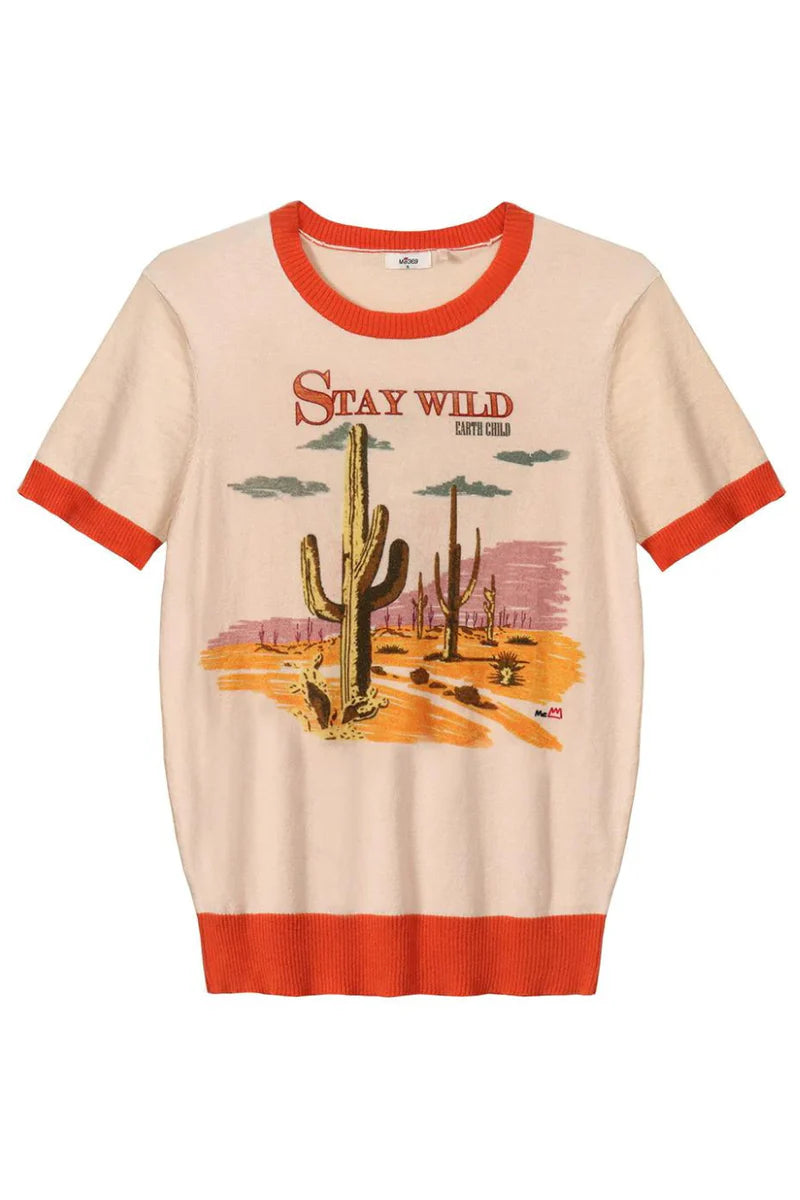 Indulge in the intricate artistry of the Nora Knit Top Cactus, adorned with a stunning cactus print and delicately tailored with short sleeves.