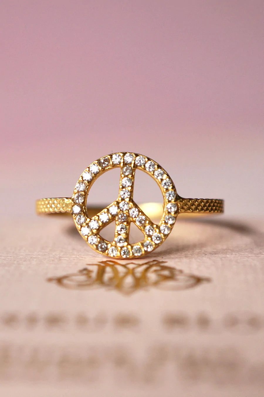 Real Lies ring and its iced-out Peace symbol hold the absurd duality of what sits in our hearts. I got trust issues because you have lying issues, yet I can’t help loving you in the most beautiful possible way.