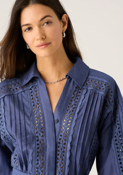 Lightweight ramie featuring cutout and frill detailing throughout