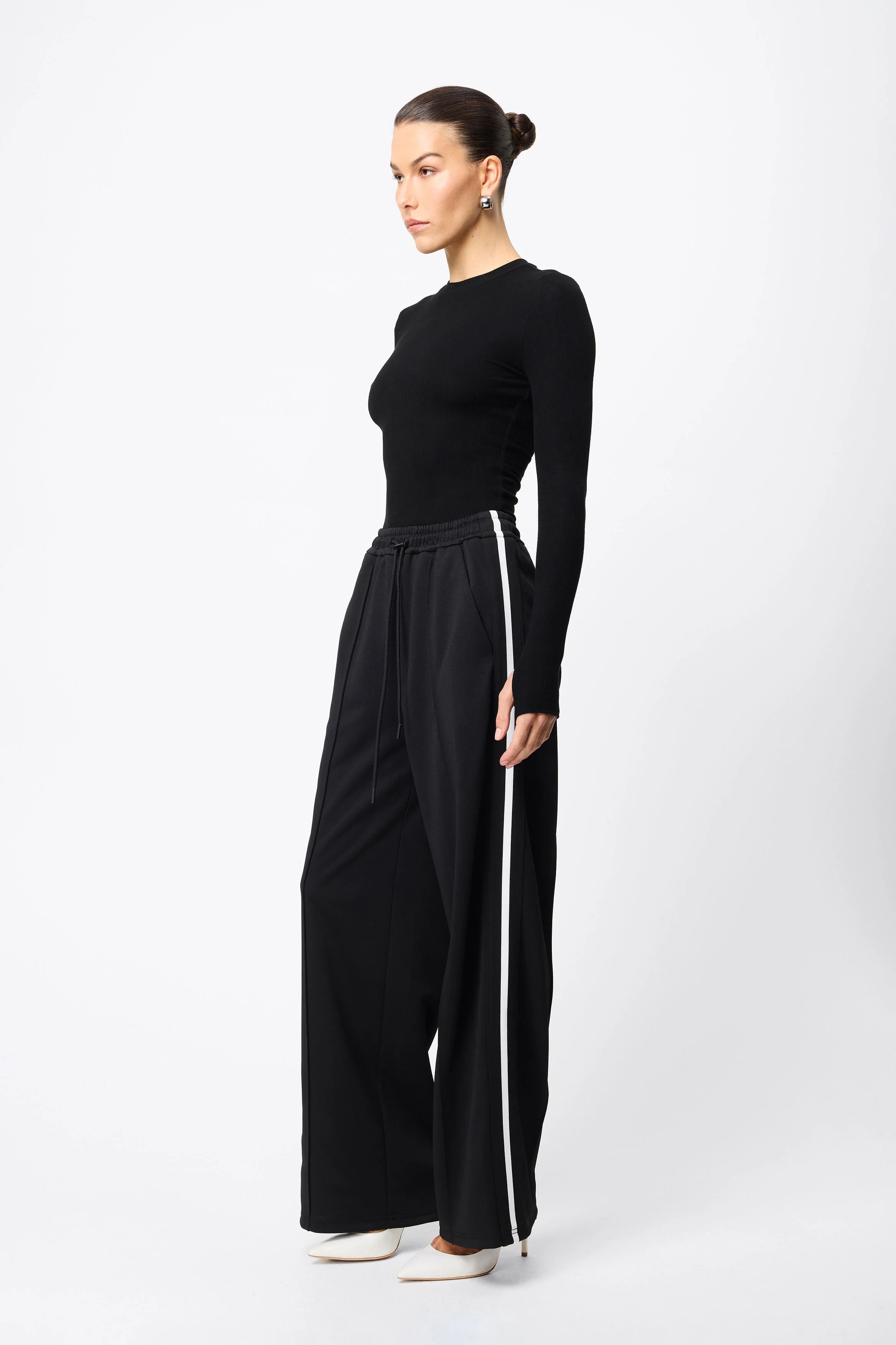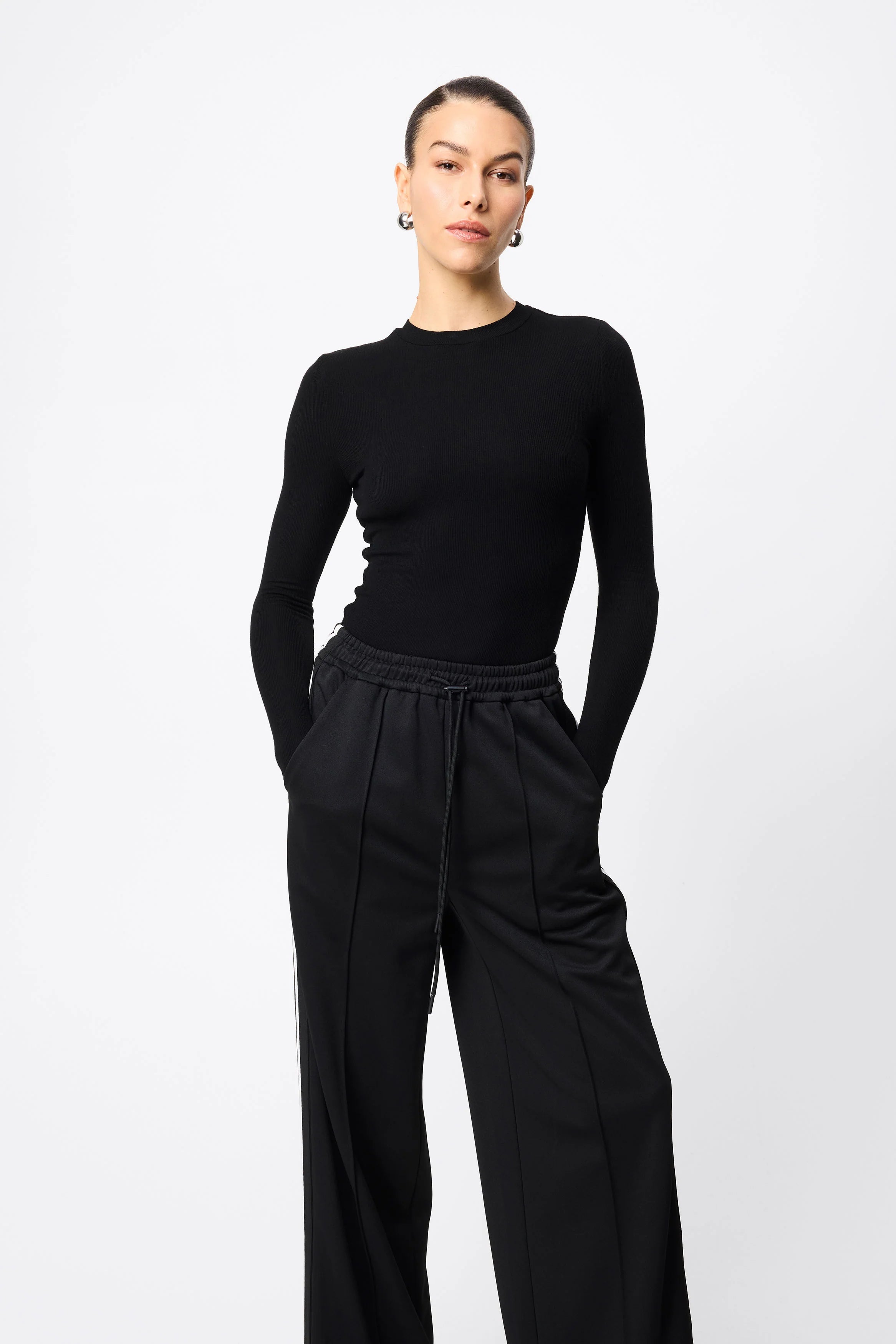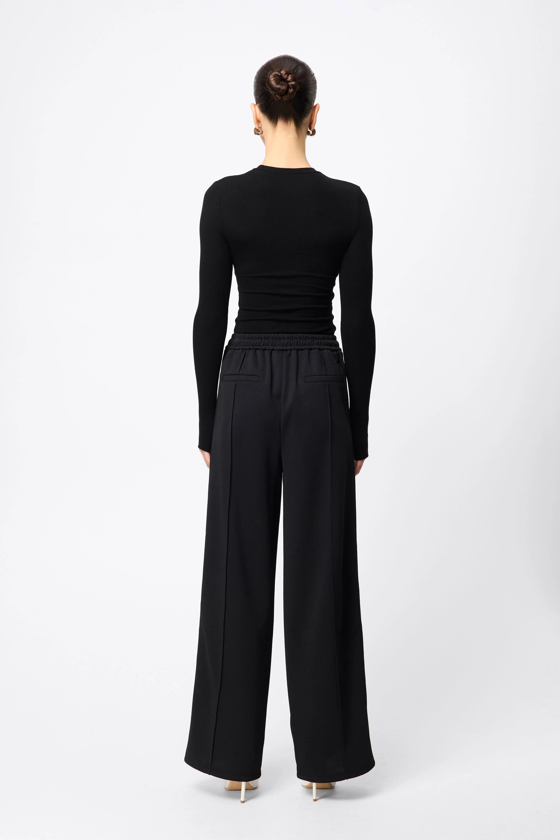 Adopt a new wardrobe favourite with the Seattle Pant in Black. Crafted from a dense jersey fabrication that offers comfort and shape retention, these wide-leg pants offer effortless style with their elasticised, drawstring waistband. Perfect with any top; pair with a knit for a polished look or style with a simple cardigan for a laid-back weekend vibe.