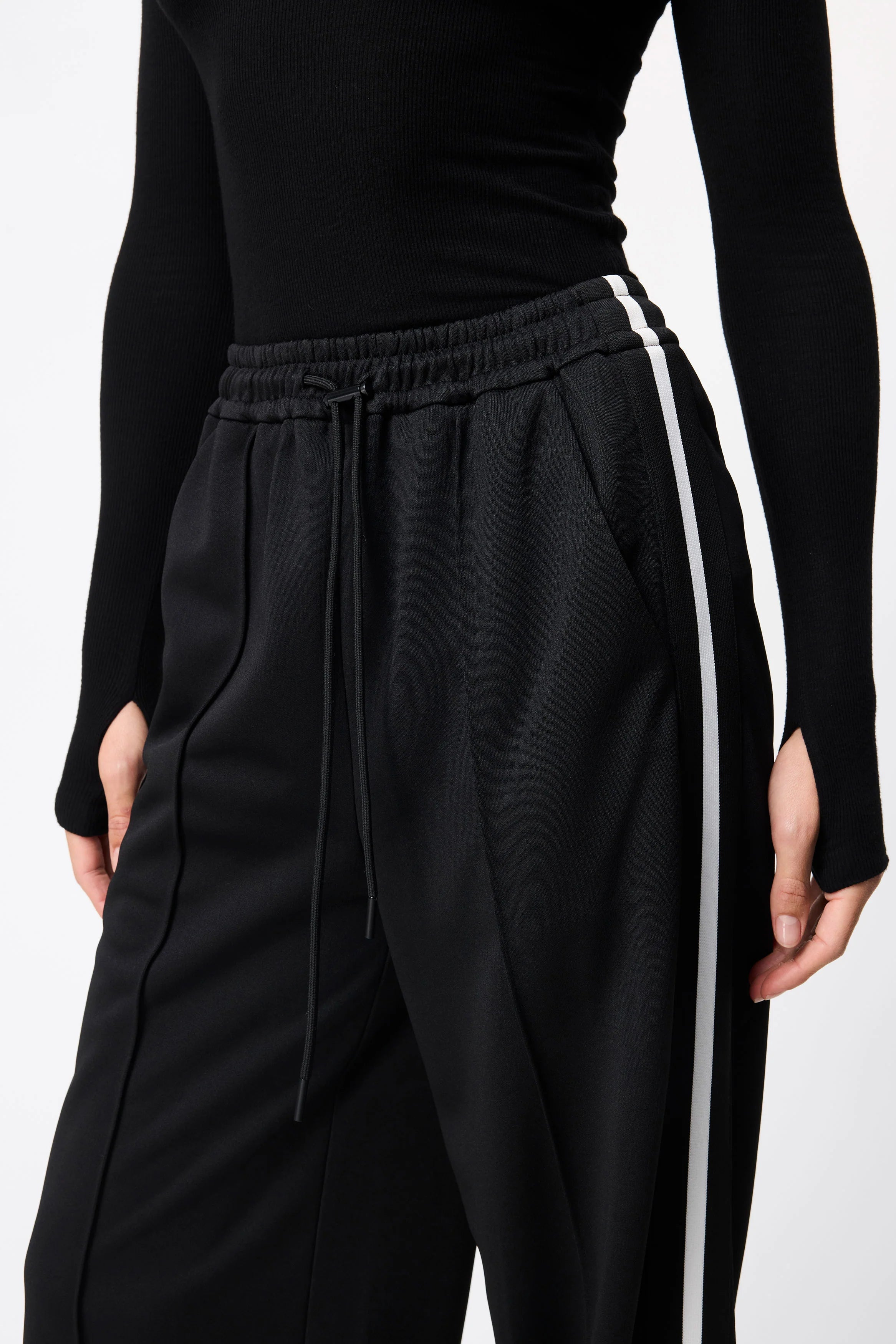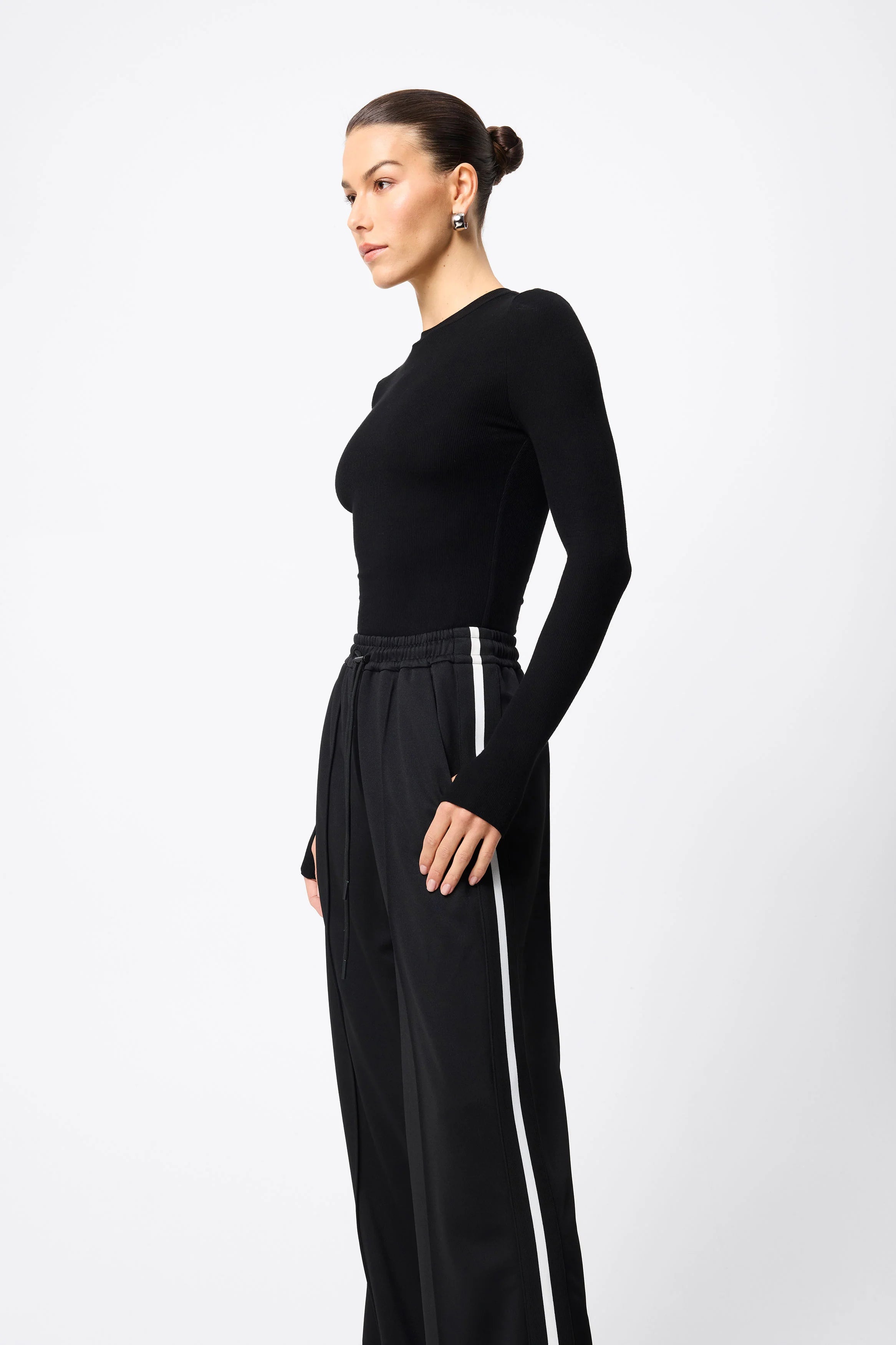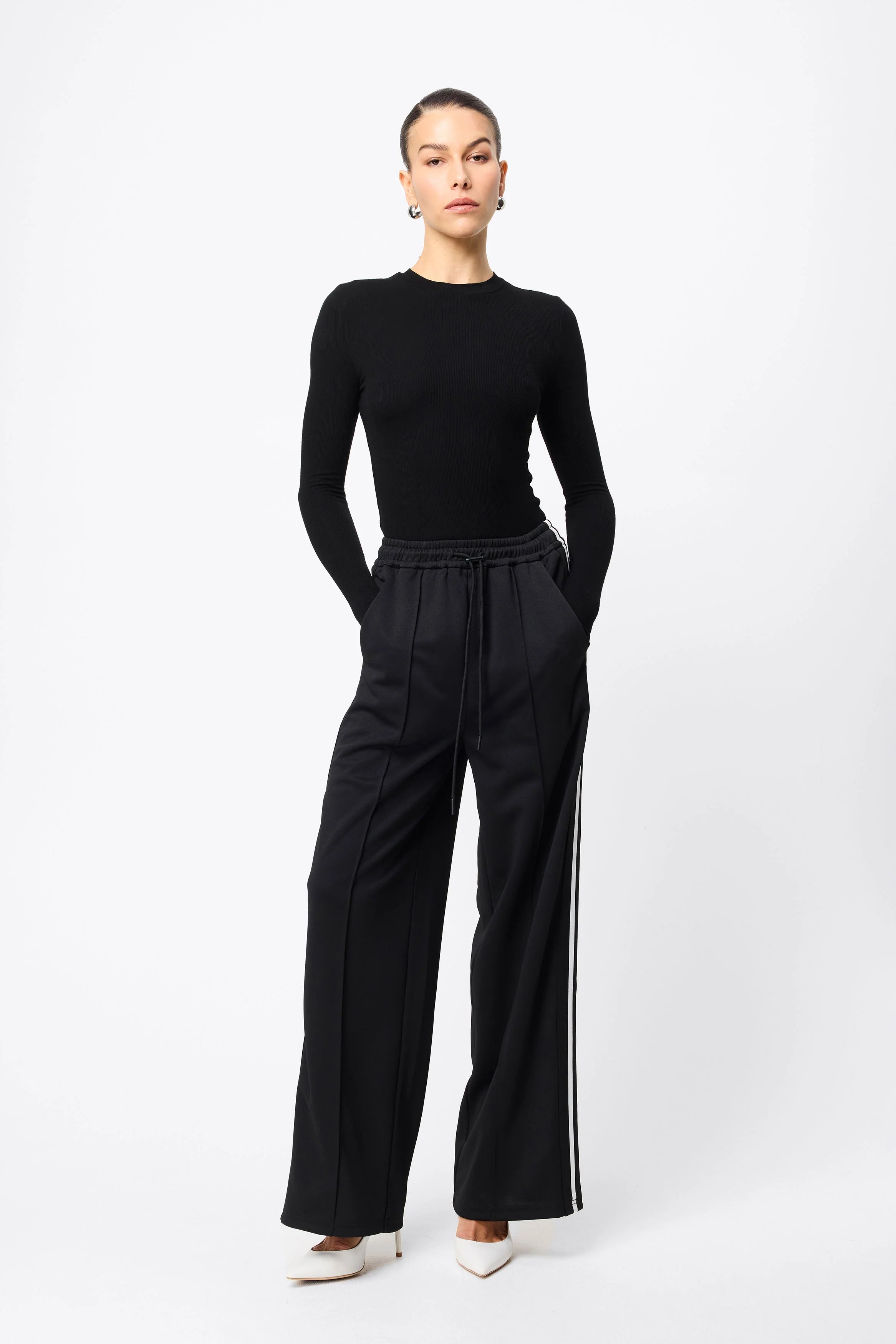 Adopt a new wardrobe favourite with the Seattle Pant in Black. Crafted from a dense jersey fabrication that offers comfort and shape retention, these wide-leg pants offer effortless style with their elasticised, drawstring waistband. Perfect with any top; pair with a knit for a polished look or style with a simple cardigan for a laid-back weekend vibe.