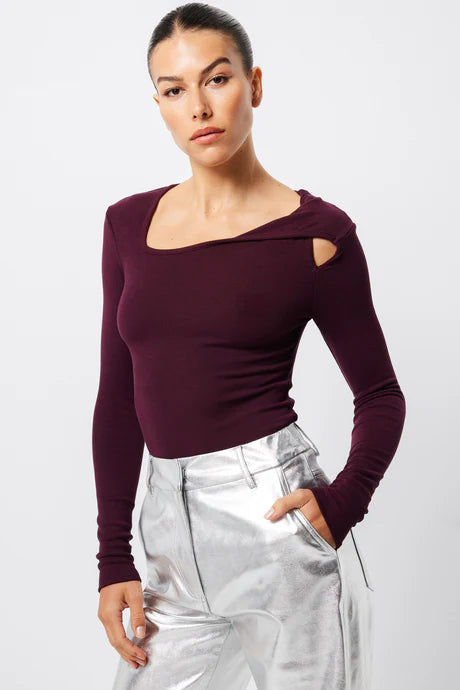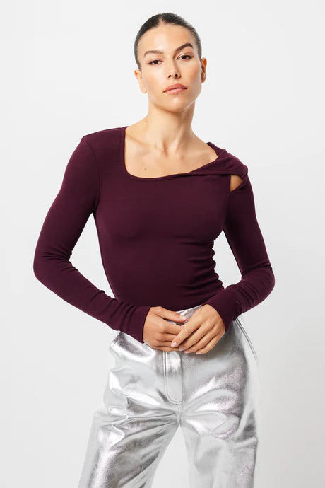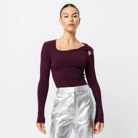 The Soho Top in Burgundy is your newest essential top with a twist. Crafted from a soft, stretch, double-layered ribbed jersey fabrication, this top features a shoulder twist detail and long sleeves with thumb holes. Perfect for the cooler months, the Soho Top effortlessly transitions from day to night, keeping you warm and pairing seamlessly with your favourite wardrobe staples.