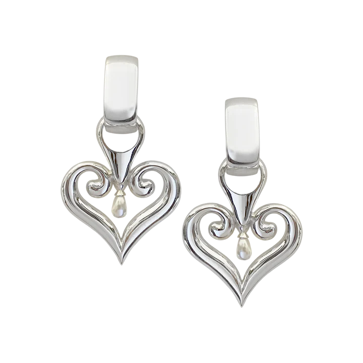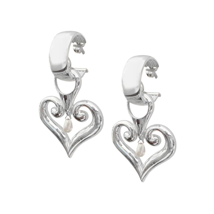 The Bella Earrings are now in silver! Everyone's favourite earrings look sleek, chic & stunning with the timeless Silver hoop and curved heart-shaped pendant accented with a petite pearl. This sophisticated and stylish statement style provides a perfect touch of chic fun to any outfit. A classic design that will pair with almost anything, these earrings will quickly become one of your go-to accessories.