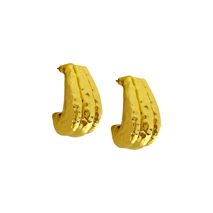 Okay let’s talk about the Jones Earring! Oh so fabulous and effortlessly chic. A golden chunky huggie style that hugs the ear with finesse and features our signature hammered texturing. The Jones is a classic shape and perfectly flows from day to night, paired with your favourite tee and denim, a suit set or summer florals, understated yet bold, she is versatile to say the least. Inspired by the power woman who can do it all. The Jones Earrings will have you feeling exactly that way… Get ready for the compliments!