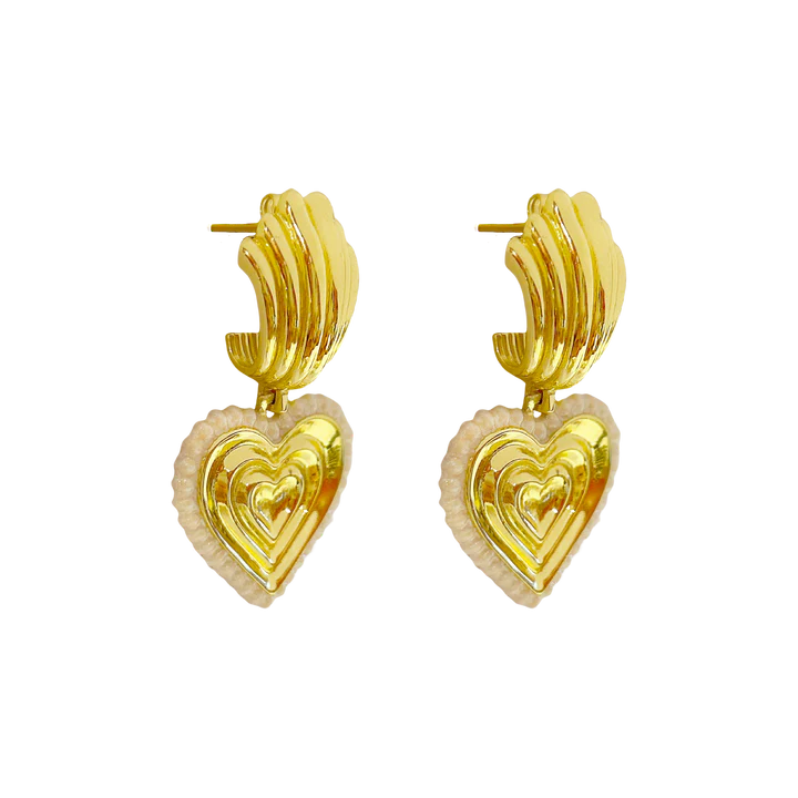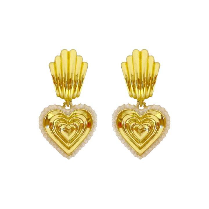 The vintage-inspired Madison Earrings will take your breath away with a golden curved high polish heart, framed in our signature rava ball work and dipped in our favourite creamy pearlescent enamel. She is the perfect motif for our romantics, not too big yet not too small she is truly a little showstopper and sure to be a go-to of the season! Pairs perfectly with your favourite cocktail!