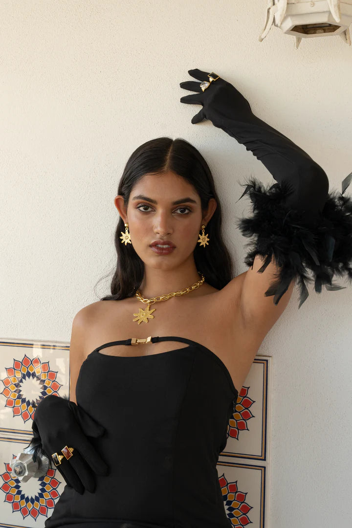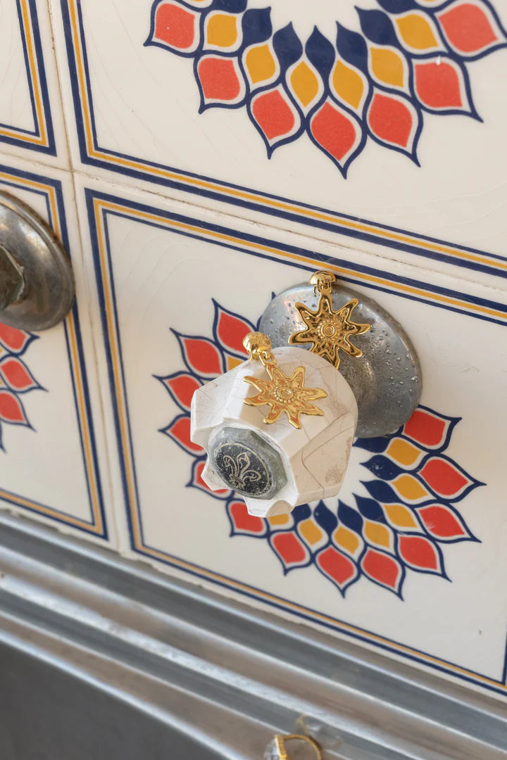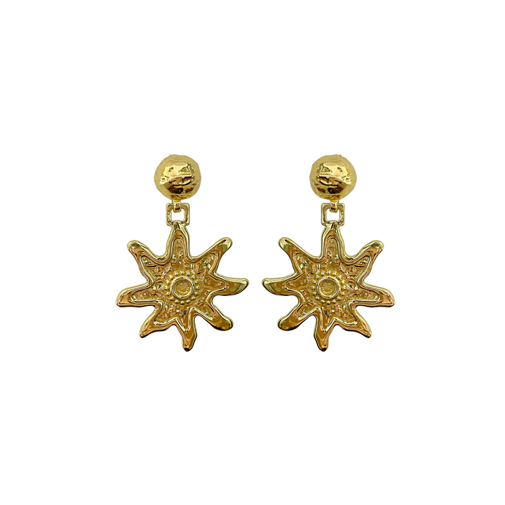 Set sail for style with the gorgeous new Mimi earrings! These earrings feature a chic curvy star motif and gold textured details for a fun, iconic look. Destined to become a cult favourite from the Primadonna Collection, they'll make your outfit shine!