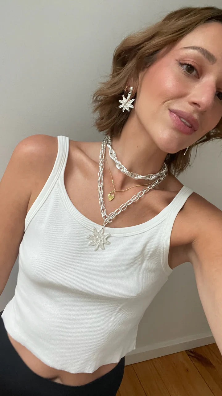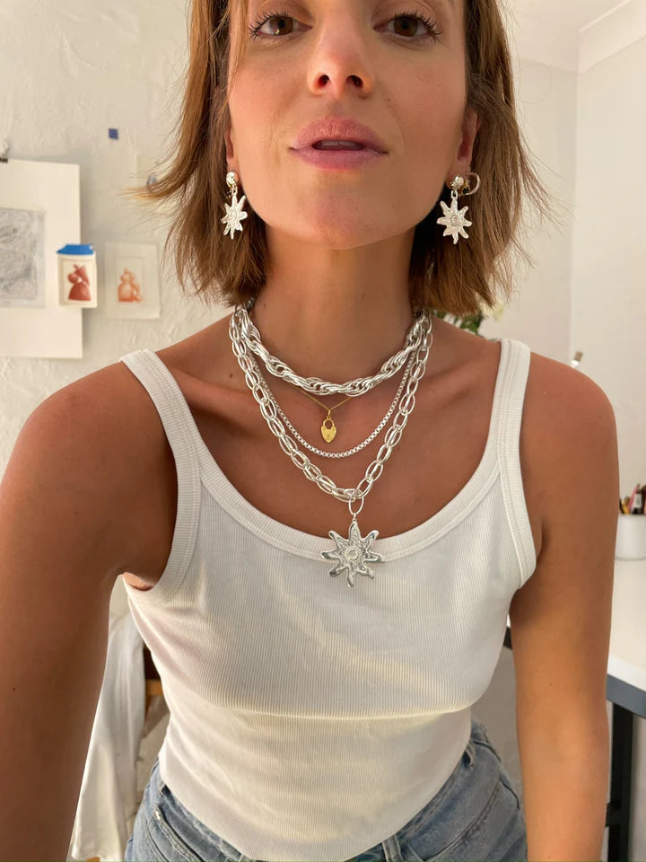 Set sail for style with the gorgeous Mimi earrings. These cute earrings feature a chic curvy star motif and silver textured details for a fun, iconic look. A bestselling cult favourite in gold, you also need the silver in your life to make your outfit shine!