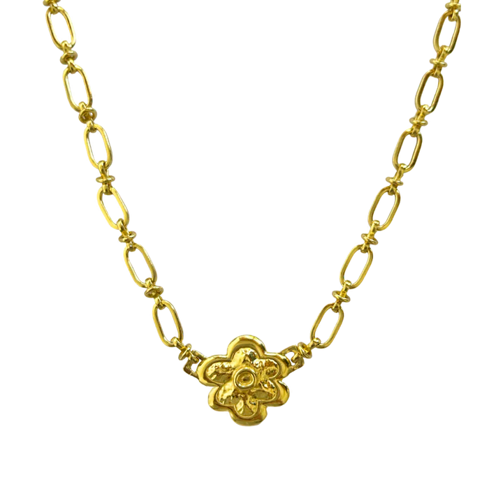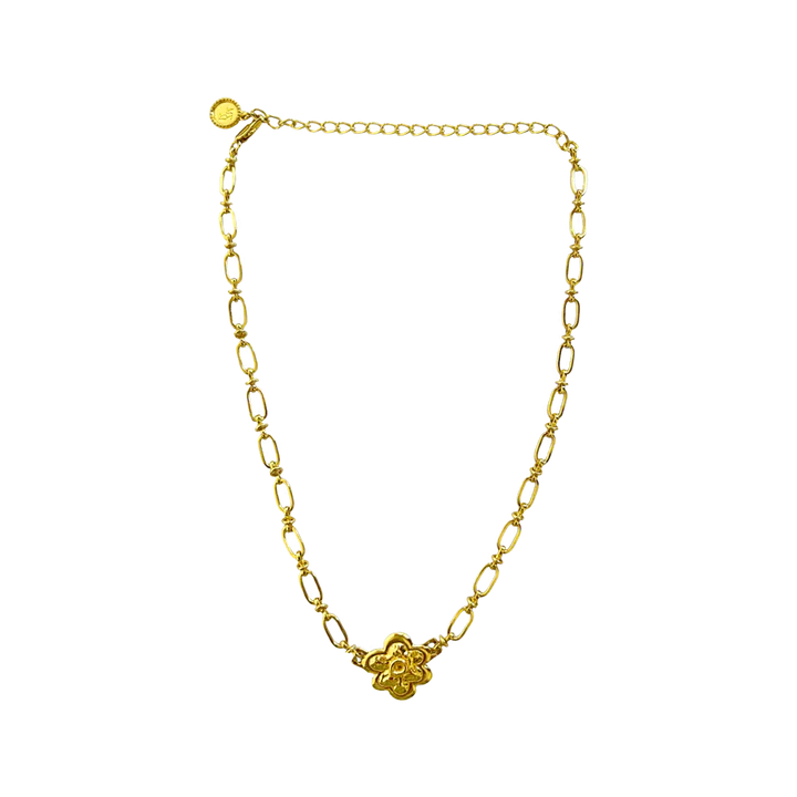 The most gorgeous little statement chain has arrived and you're going to adore Sofia. Wear her as a choker, or sitting pretty at the nape of the neck, this flower embellished chain is going to look so perfect layered with other necklaces or equally as fabulous on its own making a delicate but defined golden moment. Our personal favourite look is to layer 2-3 Sofia necklaces together at slightly different lengths for an iconic statement.