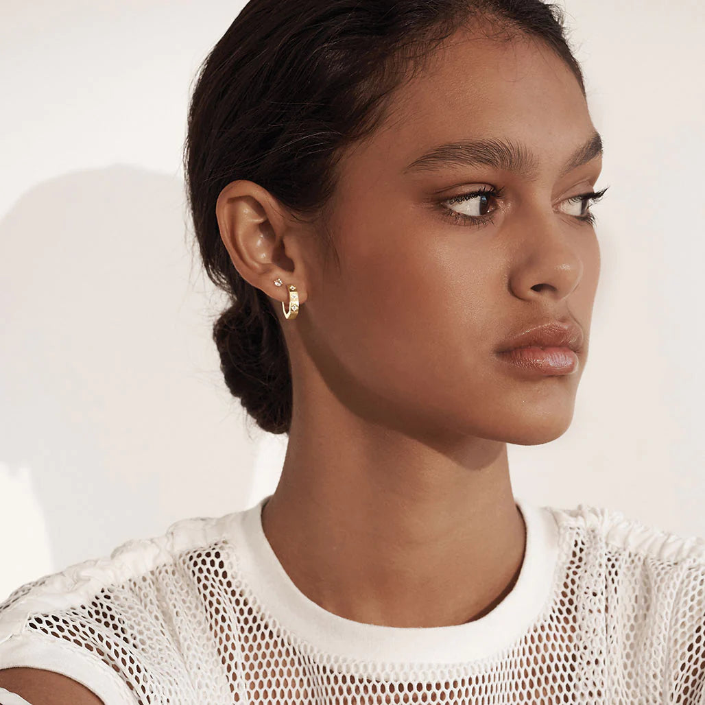 Our Octagonal Huggies are delicate and care should be given when opening. We recommend gently opening the stud post and softly clicking back into place. No pressure is needed to close the Octagonal huggies.