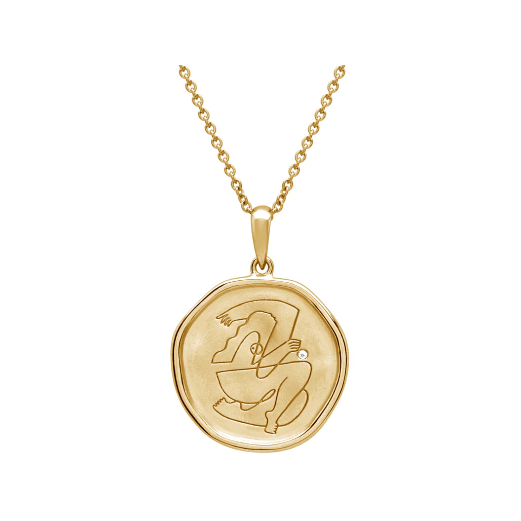 Coin Necklace with etched Empowerment drawing on pendant, featuring White Topaz.
