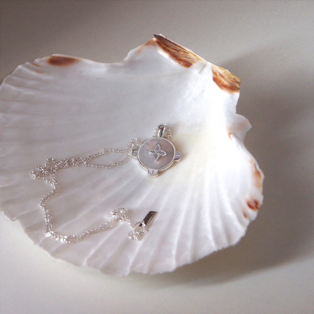 - The pendant’s surface is made of Mother of Pearl