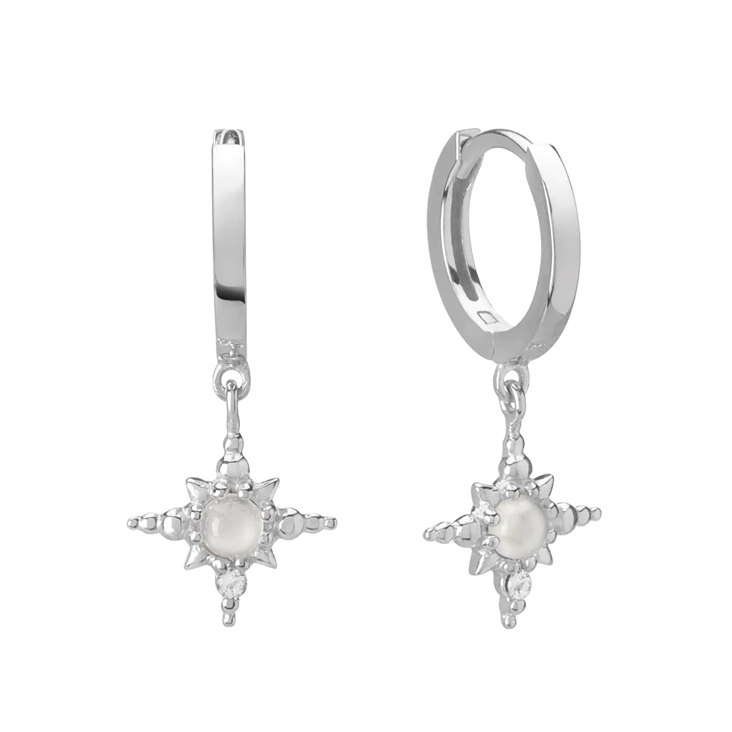 11mm Huggies with hanging star featuring Moonstone and White Topaz.