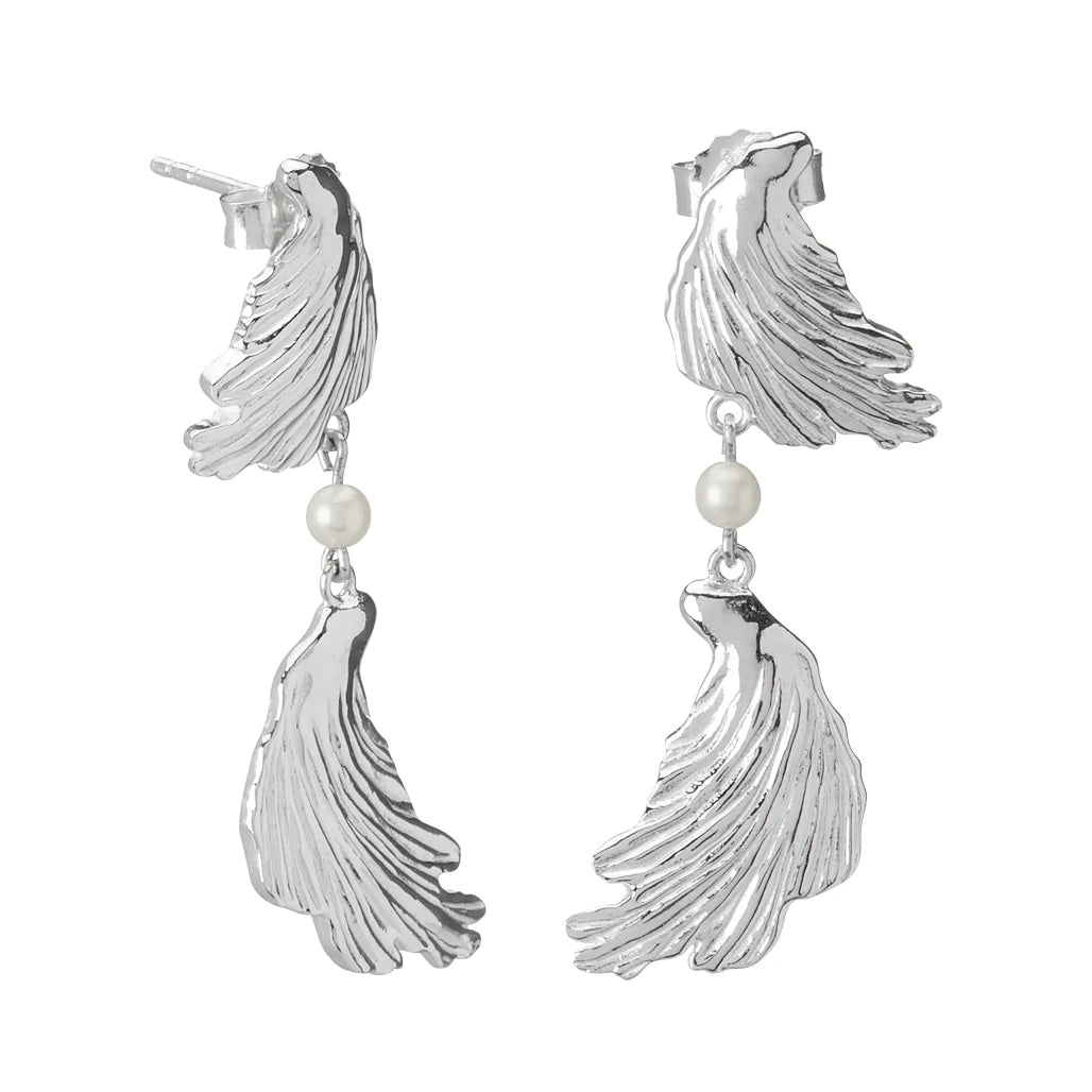 Hanging Wave Earrings with Pearl detail.