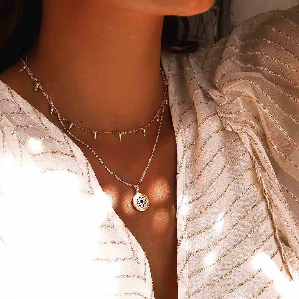 Paying homage to the sand dunes and Berber nomadic tribes wandering across the Sahara Desert, the Sahara Dagger Choker is made up of striking dagger like pendants complimented by a chic chain.